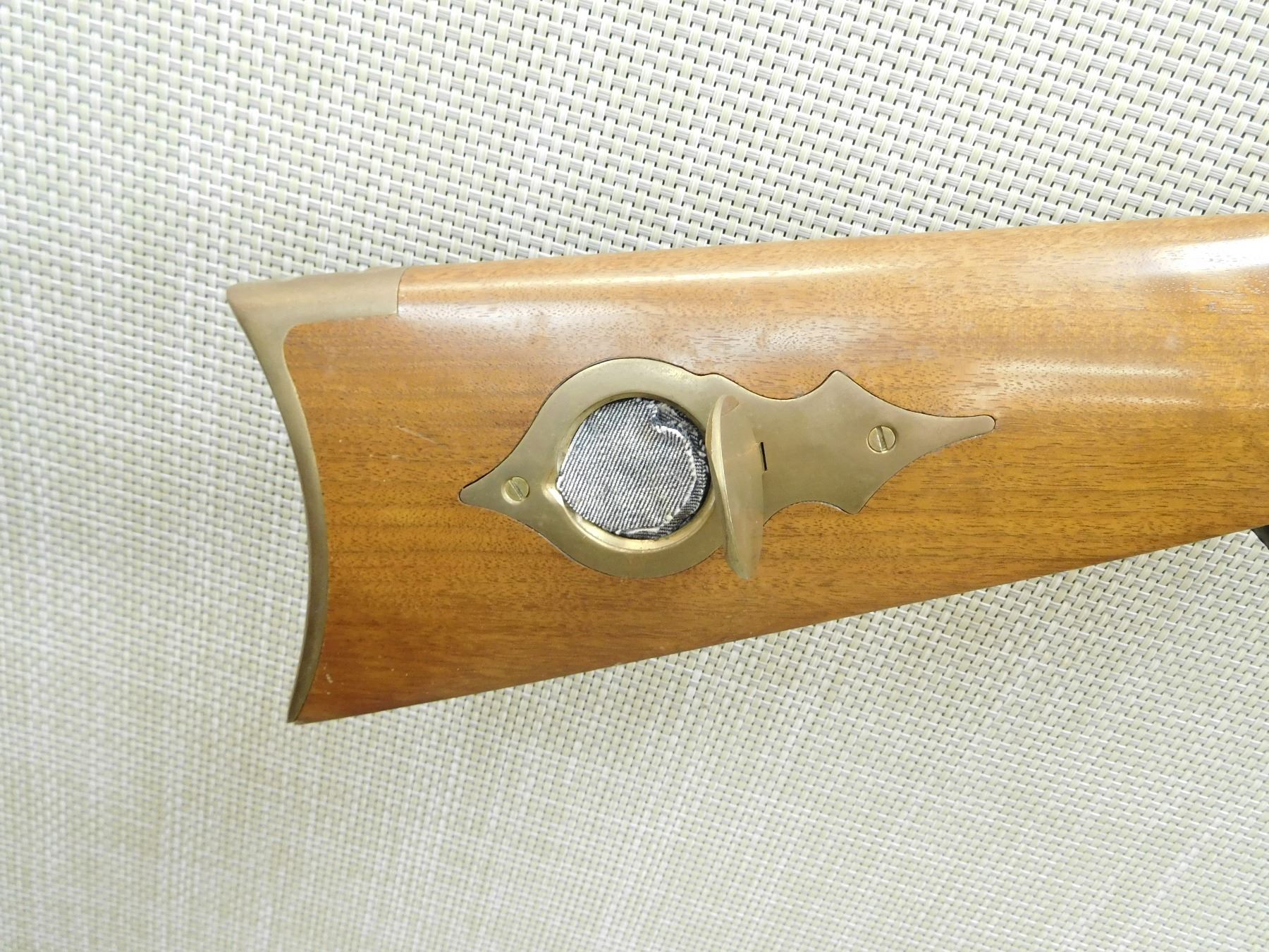 OCTAGONAL BARREL, DOVETAIL FRONT AND PEEP ADJUSTABLE REAR SIGHT, SHOWS SOME PITTING AT THE MUZZLE, HAS A RAM ROD, BRASS FANCY TRIGGER GUARD WITH SET TRIGGER BRASS CRESENT BUTT PLATE, SHOWS SOME HANDLING MARKS , SERIAL # 138139 , ACTION: PERCUSSION RIFLE , BARREL LENGTH: 28" , CONDITION: 6/10 , STOCK # 7666 , CLASS: CANADIAN NON RESTRICTED CLASS