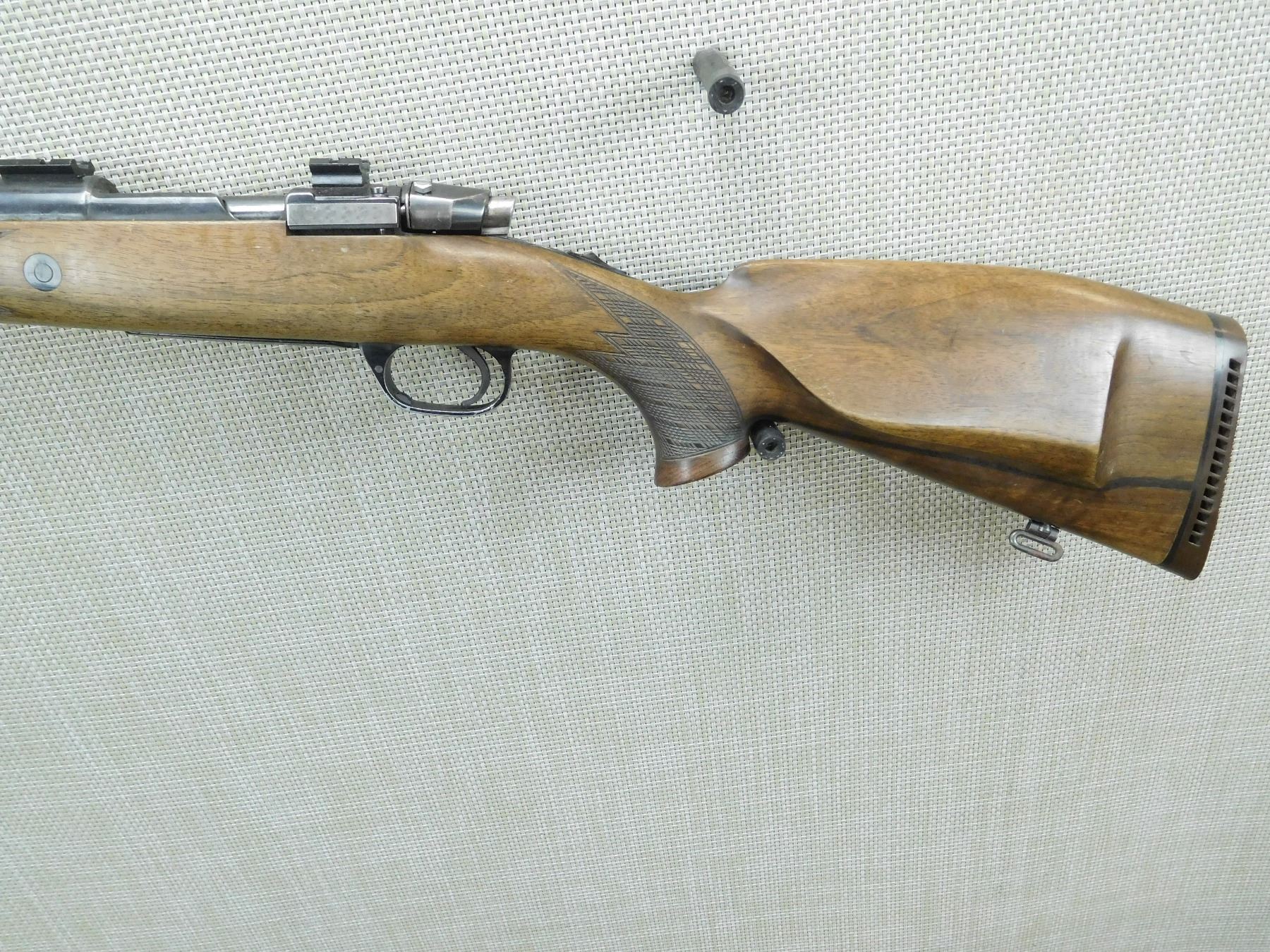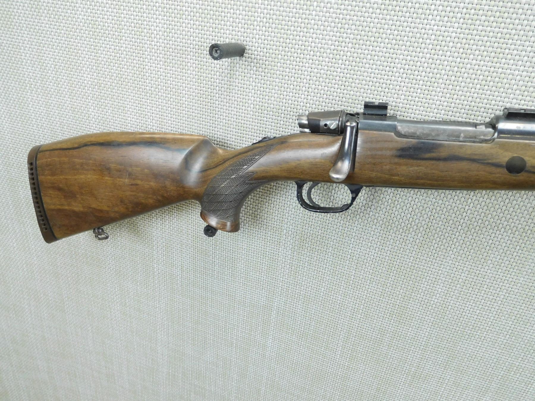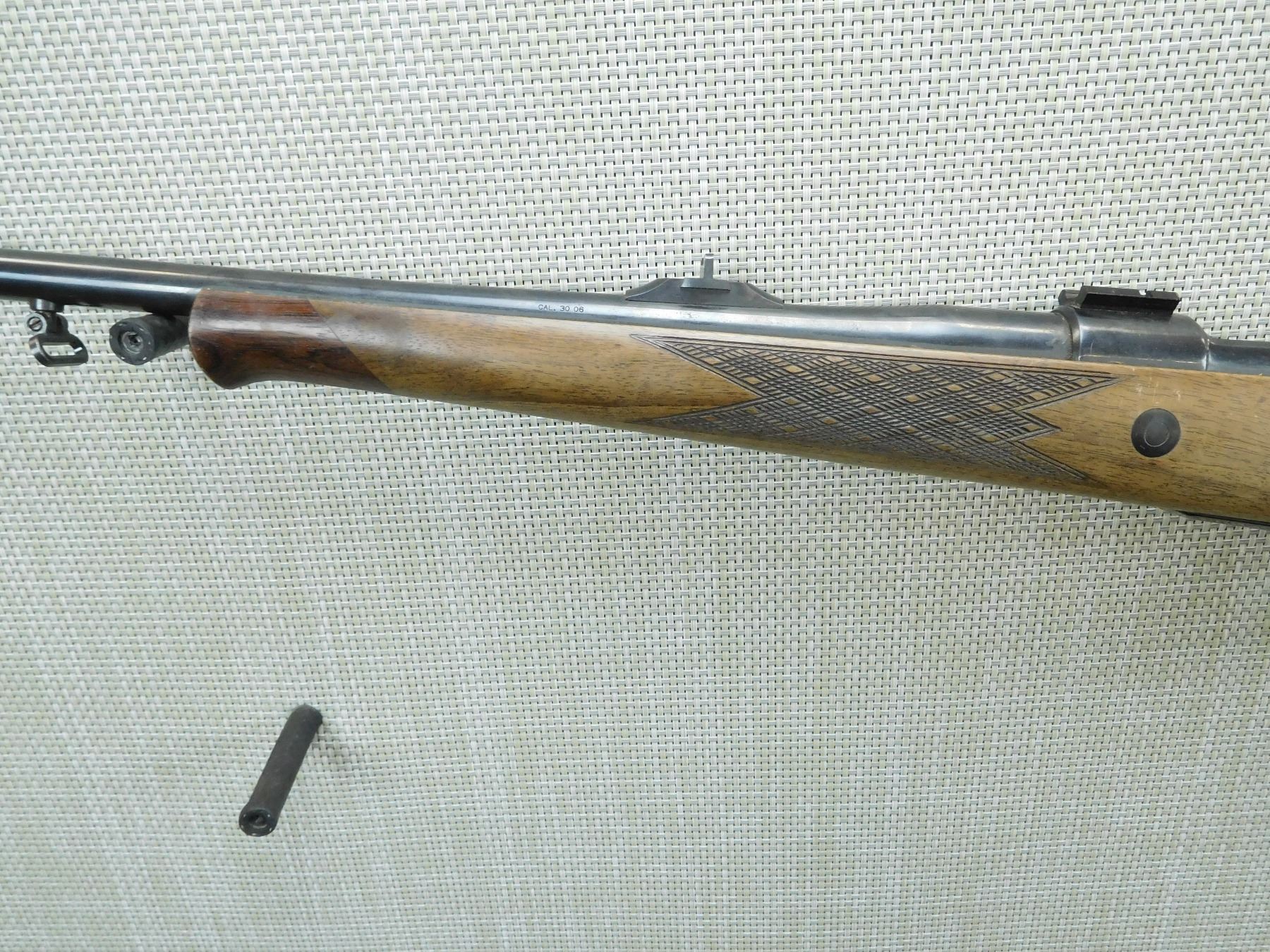 BORE IS VERY GOOD, THIS HAS AN ALTERED SHROUD WHICH IS POORLY ATTACHED, HAS A BUTTER KNIFE BOLT HANDLE, CHECKERED FOREND AND CAPPED PISTOL GRIP BUTT STOCK WITH RAISED CHEEK PIECE, VENTED RUBBER RECOIL PAD, HOODED FRONT AND FIXED REAR SIGHT, ALSO FEATURES SCOPE MOUNTS , SERIAL # 317423 , ACTION: BOLT ACTION RIFLE , BARREL LENGTH: 22" , CONDITION: 5/10 , STOCK # 7674 , CLASS: CANADIAN NON RESTRICTED CLASS