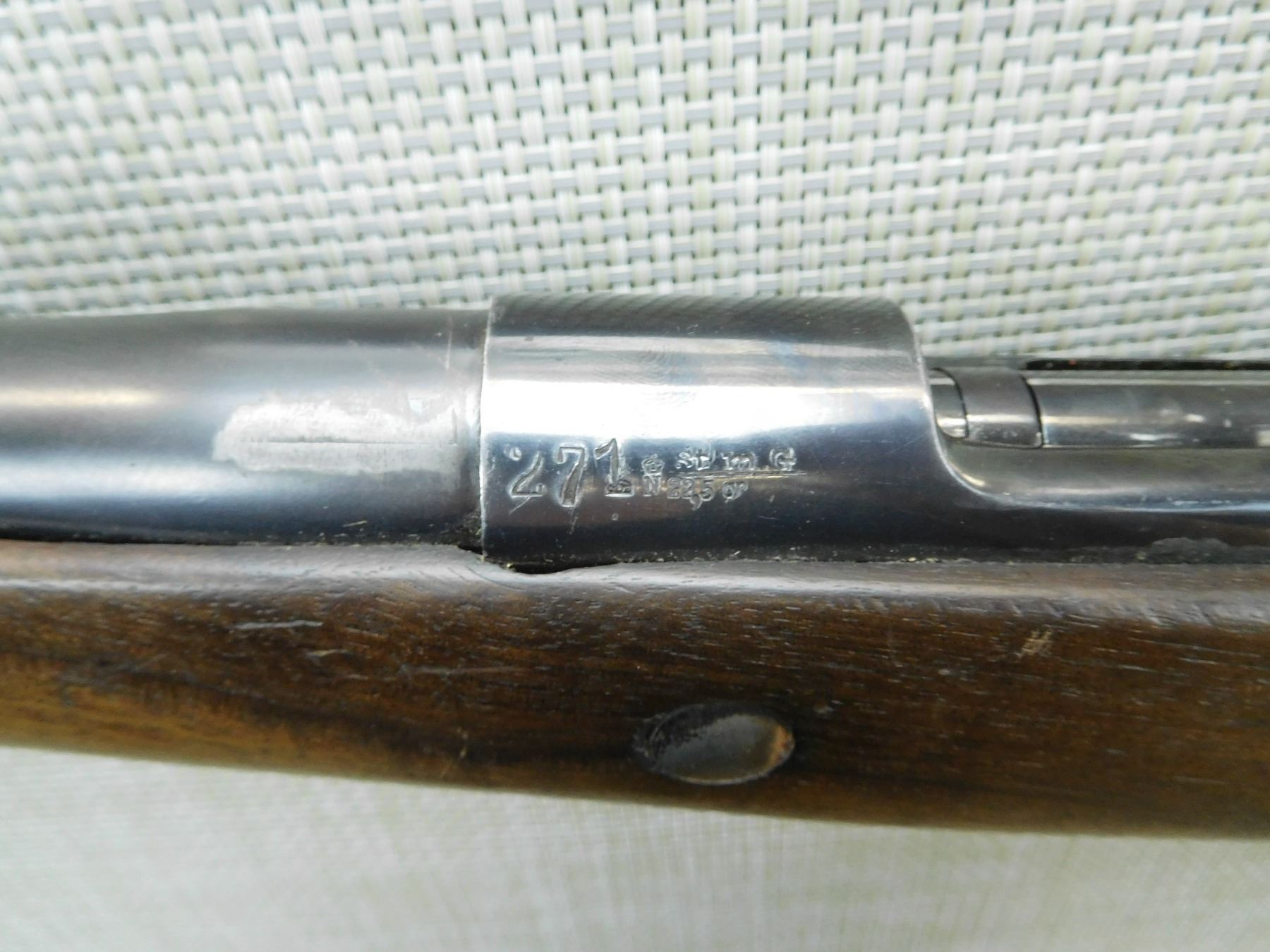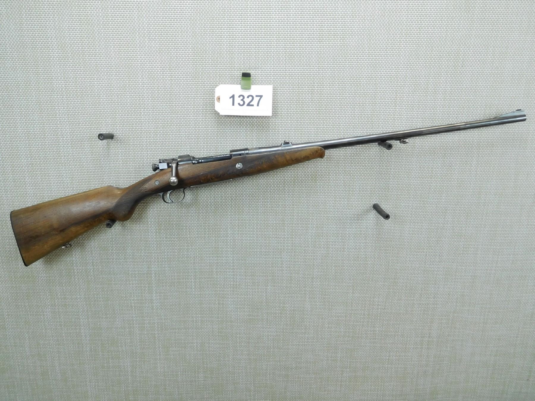 REBARRELED TO 10.75 X 68, BORE IS VERY GOOD, RAMP FRONT AND EXPRESS REAR SIGHTS, CHECKERED SEMI PISTOL GRIP BUTT STOCK WITH RAISED CHEEK PIECE, PLASTIC BUTT PLATE, CRACK AT WRIST , SERIAL # 271 , ACTION: BOLT ACTION RIFLE , BARREL LENGTH: 23" , CONDITION: 5/10 , STOCK # 7683 , CLASS: CANADIAN NON RESTRICTED CLASS
