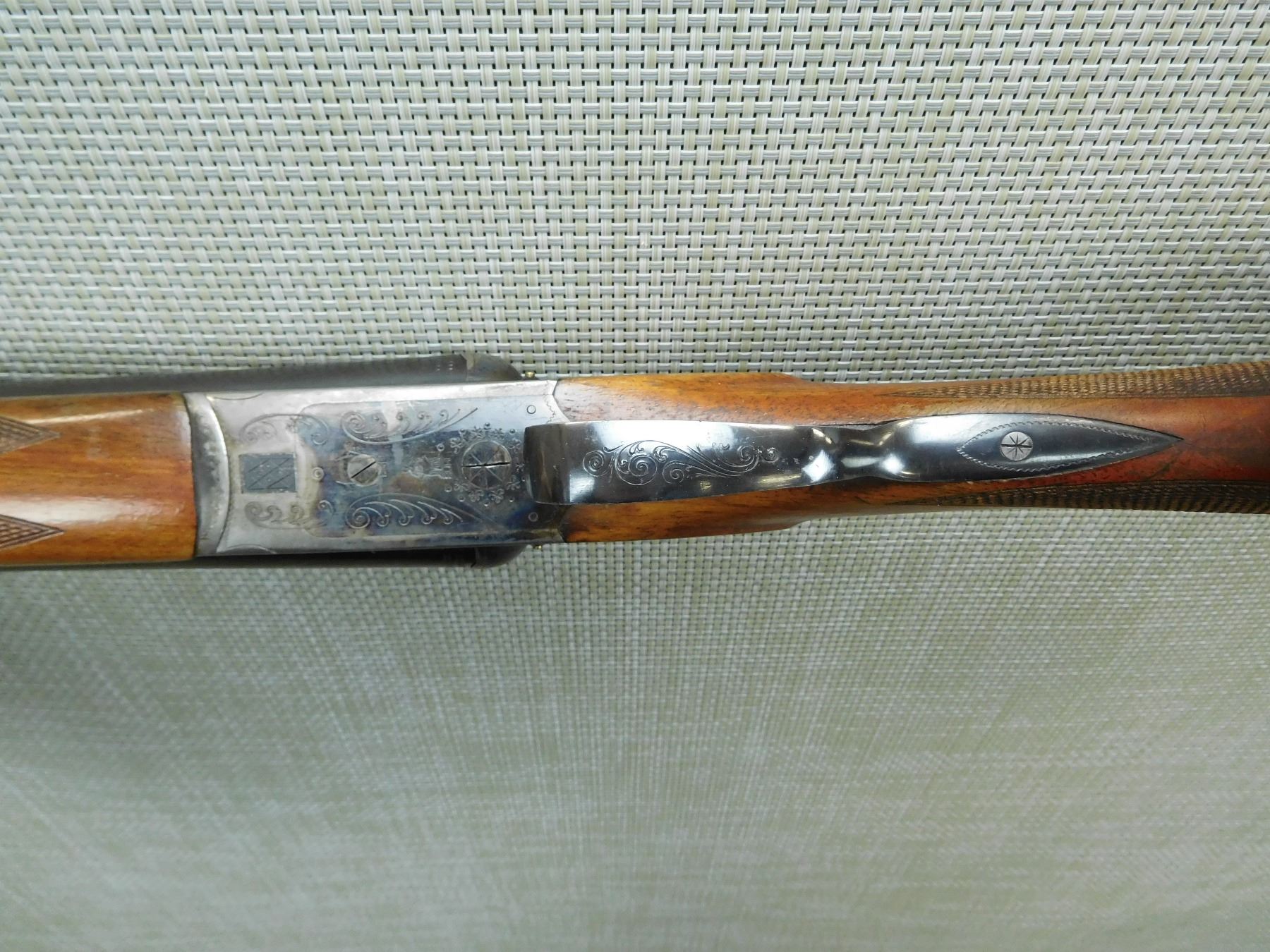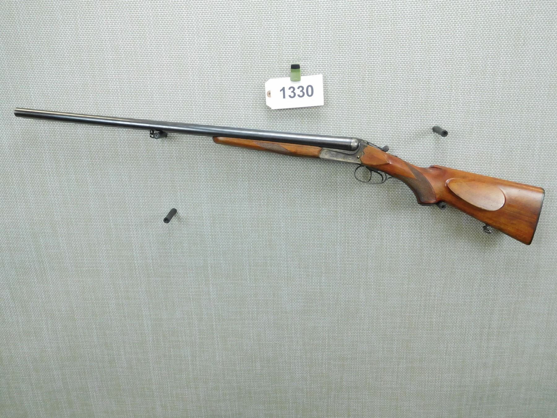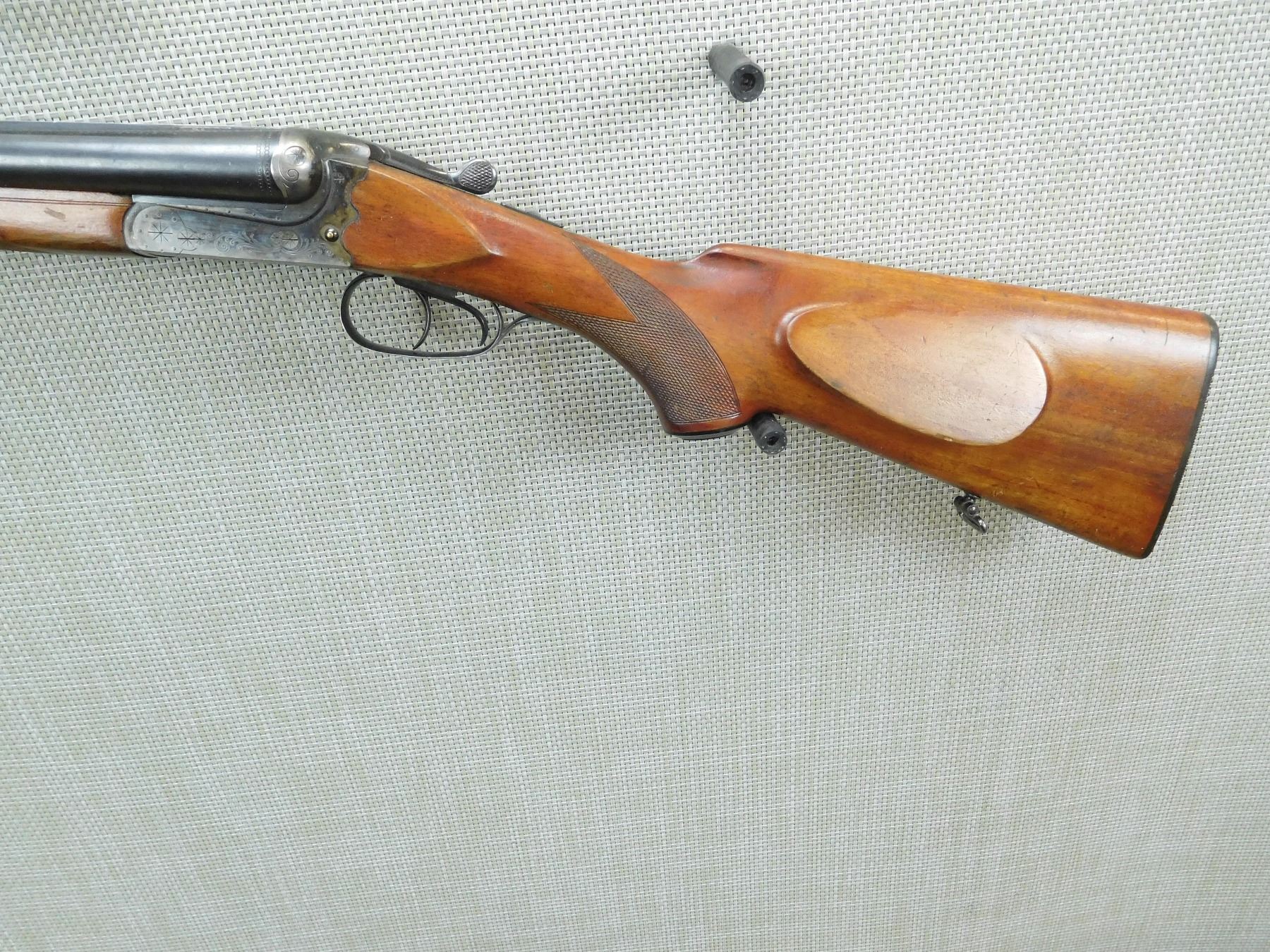 BORES ARE VERY GOOD, BEAD FRONT SIGHT, CHECKERED FOREND AND CAPPED PISTOL GRIP BUTT STOCK WITH RAISED CHEEK PIECE, PLASTIC BUTT PLATE, SHOWS SOME HANDLING MARKS, COCKING INDICATORS , SERIAL # 535280 , ACTION: SIDE BY SIDE BREAK ACTION SHOTGUN , BARREL LENGTH: 28" , CONDITION: 6/10 , STOCK # 7686 , CLASS: CANADIAN NON RESTRICTED CLASS