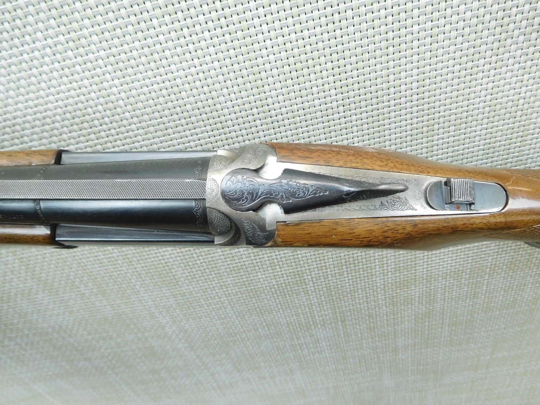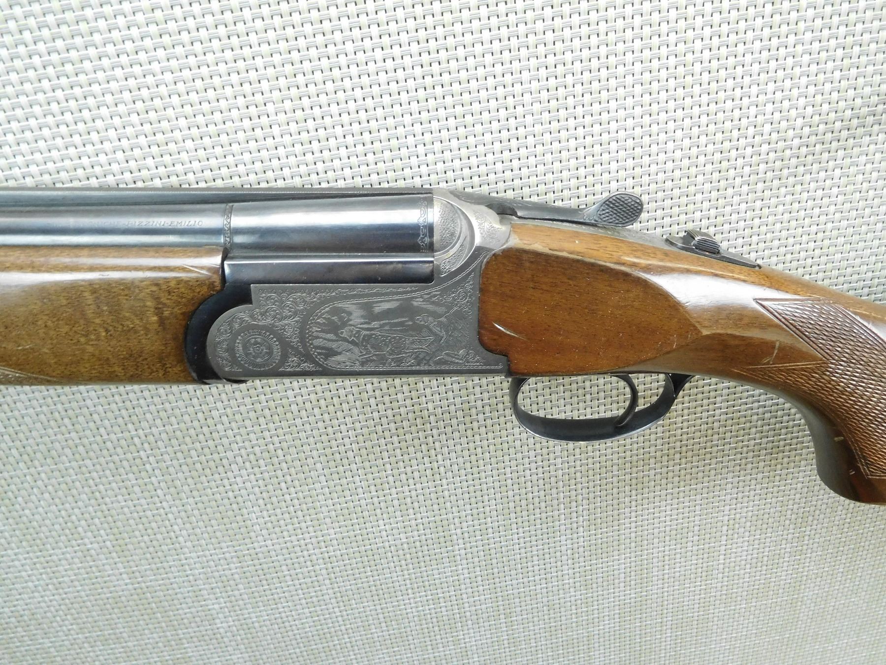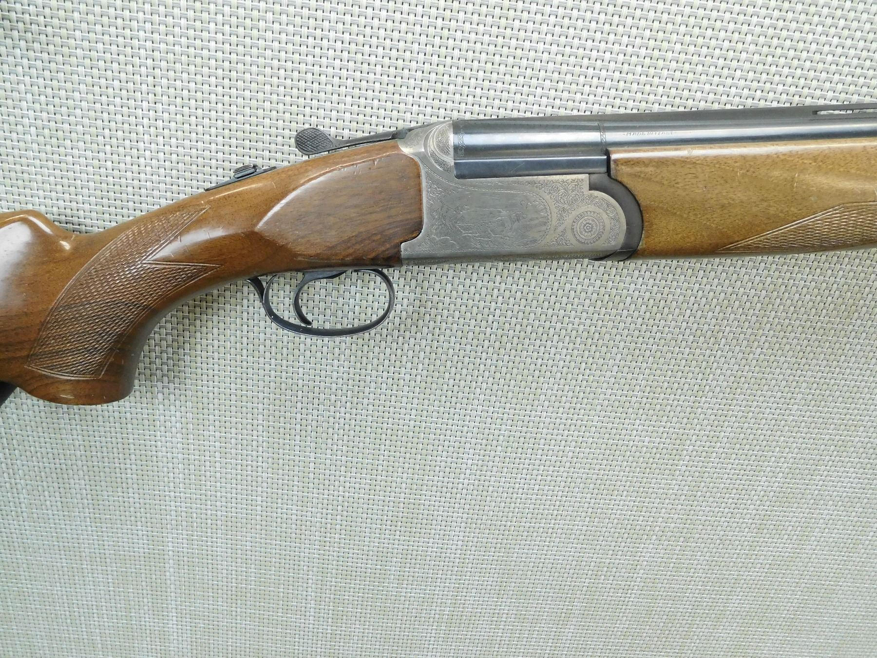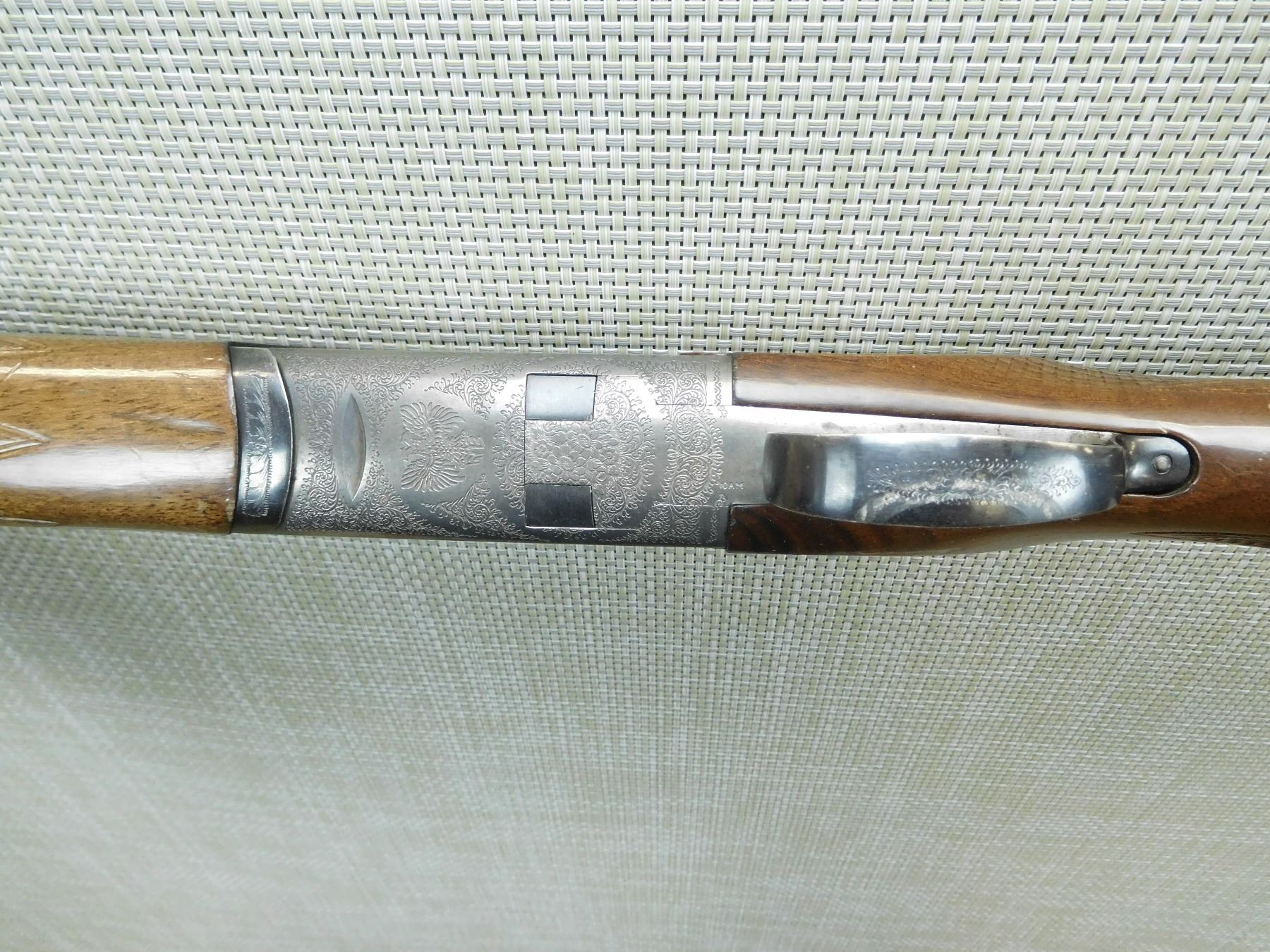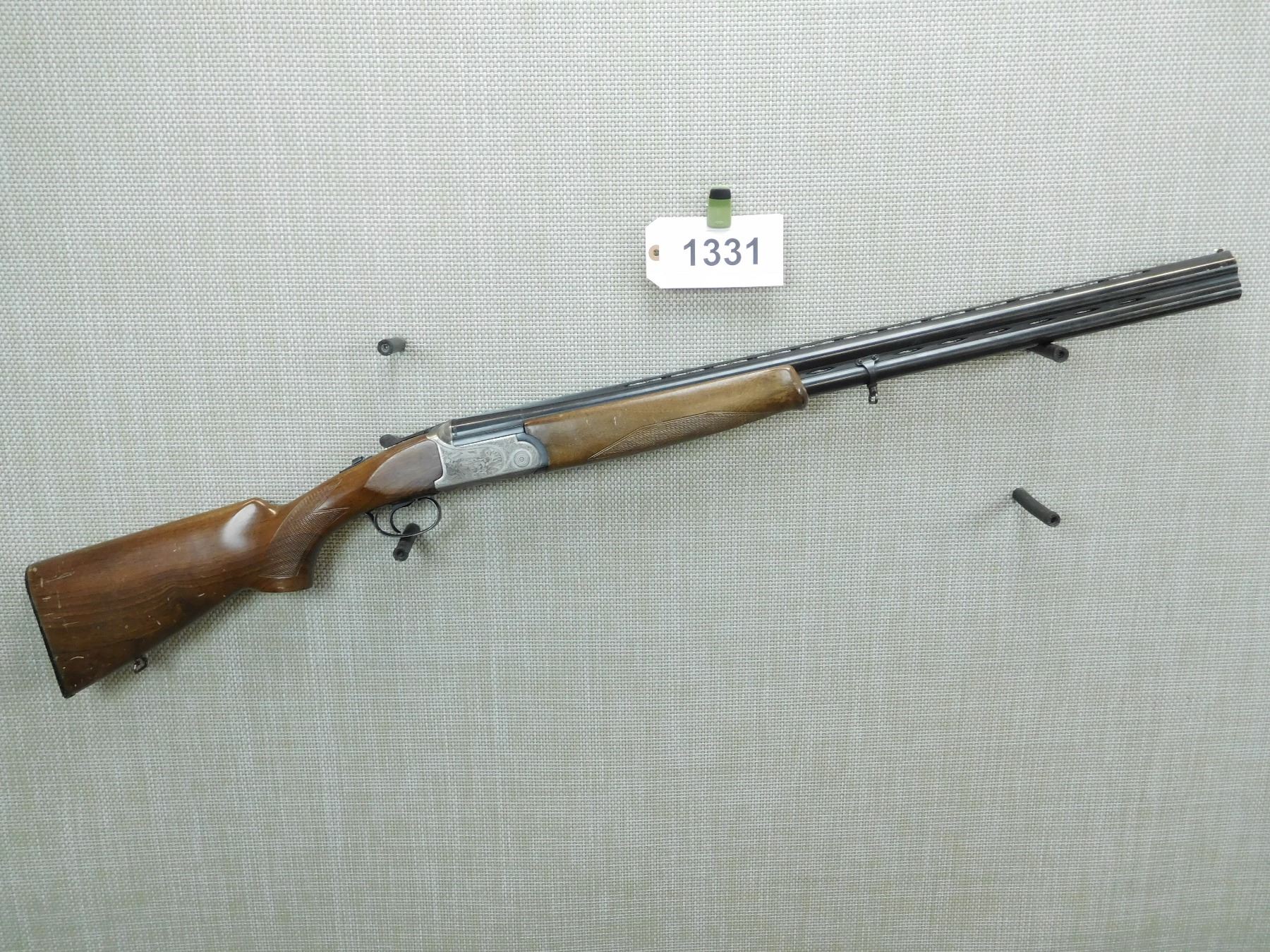 BORES ARE VERY GOOD, WHITE BEAD FRONT SIGHT ON A VENTED RIB BARREL, CHECKERED FOREND AND SEMI PISTOL GIRP BUTT STOCK WITH RUBBER BUTT PLATE, SLING SWIVELS, RICHLEY ENGRAVED RECEIVER, SHOWS SOME HANDLING MARKS, SINGLE TRIGGER , SERIAL # 61999 , ACTION: OVER UNDER SHOTGUN , BARREL LENGTH: 28" , CONDITION: 6/10 , STOCK # 7687 , CLASS: CANADIAN NON RESTRICTED CLASS