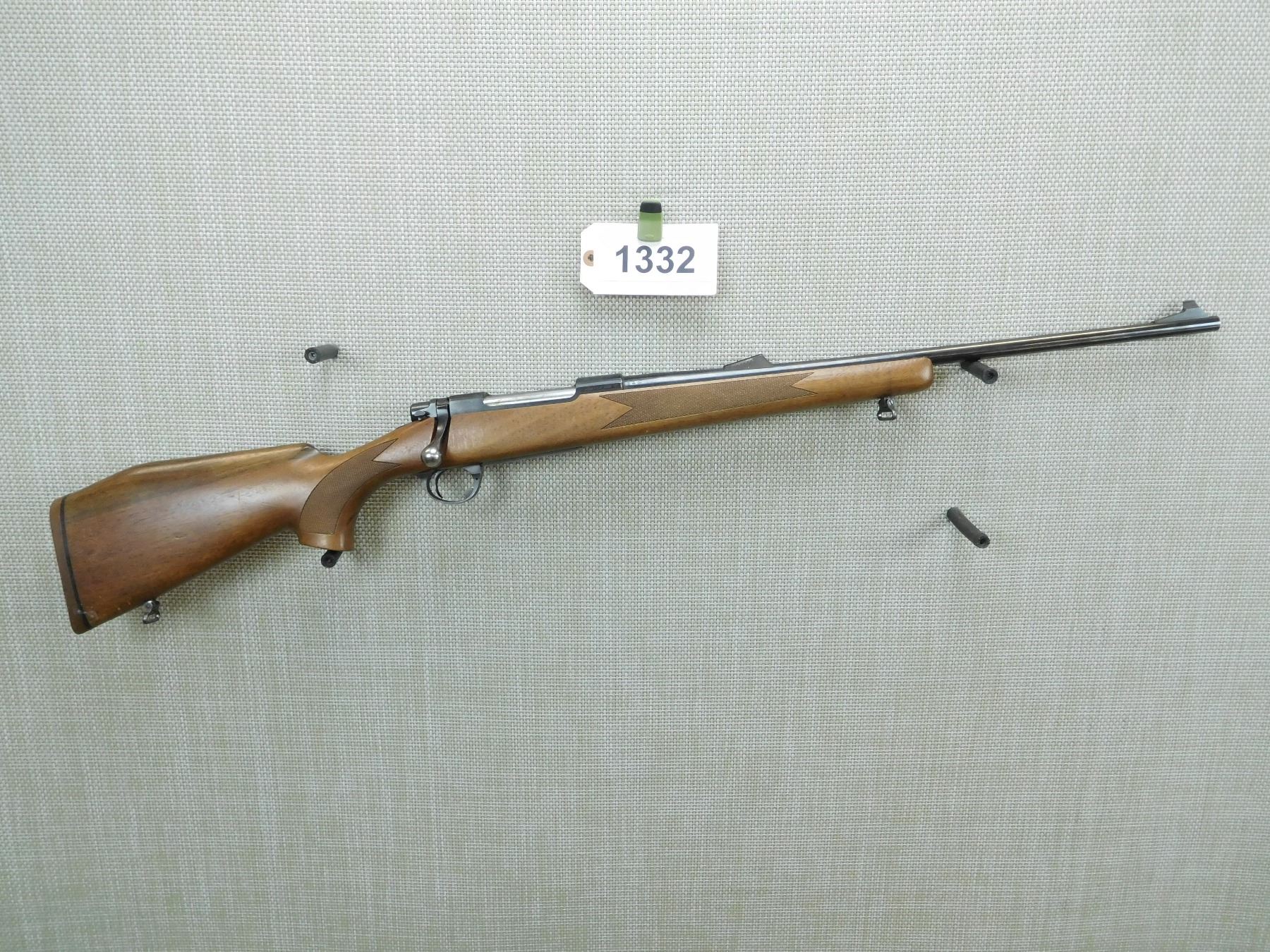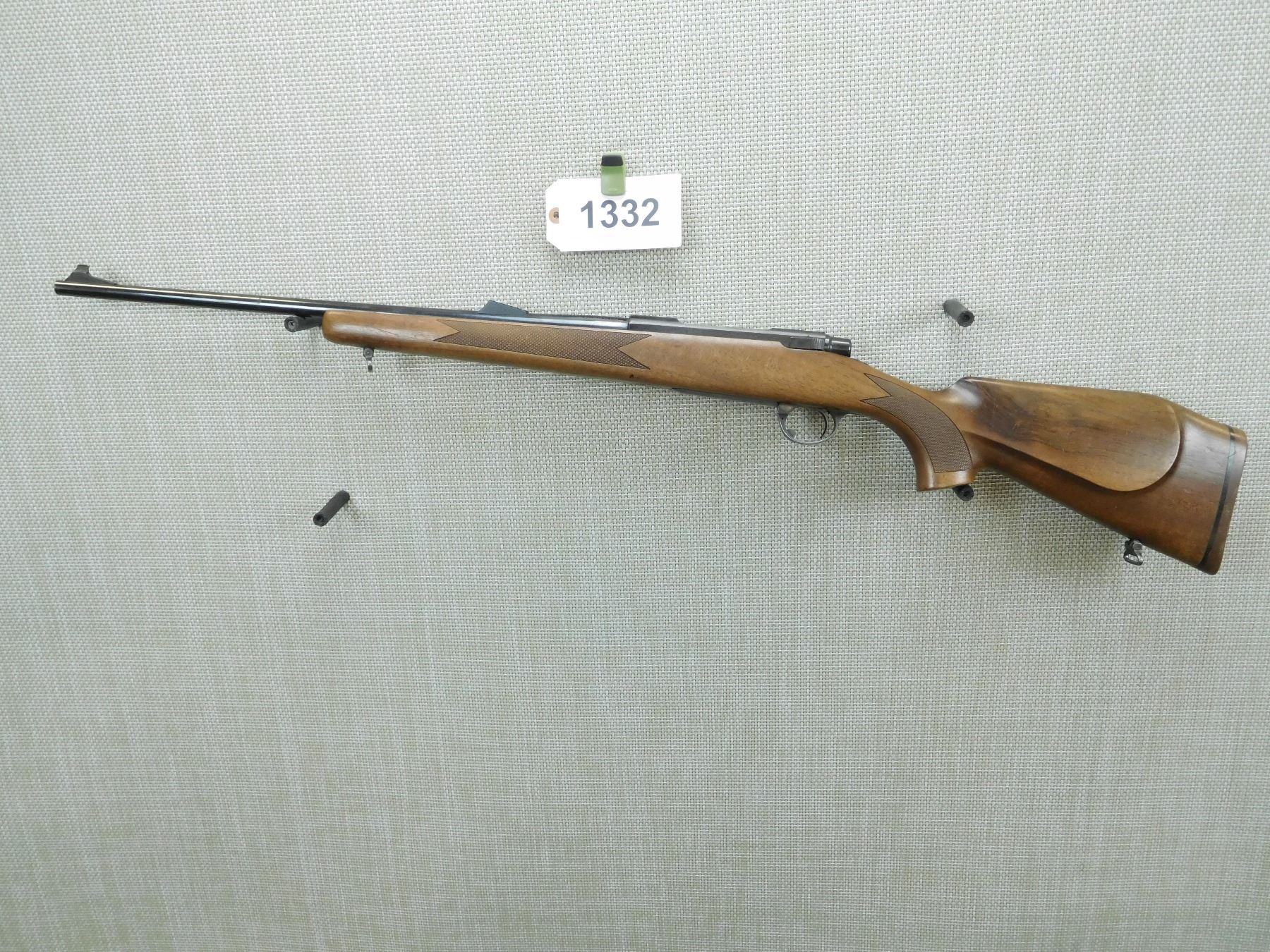BORE IS GOOD, RAMP FRONT SIGHT AND MISSING THE REAR SIGHT, DRILLED AND TAPPED FOR SCOPE MOUNTS, CHECKERED FOREND AND RAISED CHEEK PIECE BUTT STOCK WITH RUBBER RECOIL PAD, SLING SWIVELS , SERIAL # 16749 , ACTION: BOLT ACTION RIFLE , BARREL LENGTH: 22" , CONDITION: 6/10 , STOCK # 7688 , CLASS: CANADIAN NON RESTRICTED CLASS