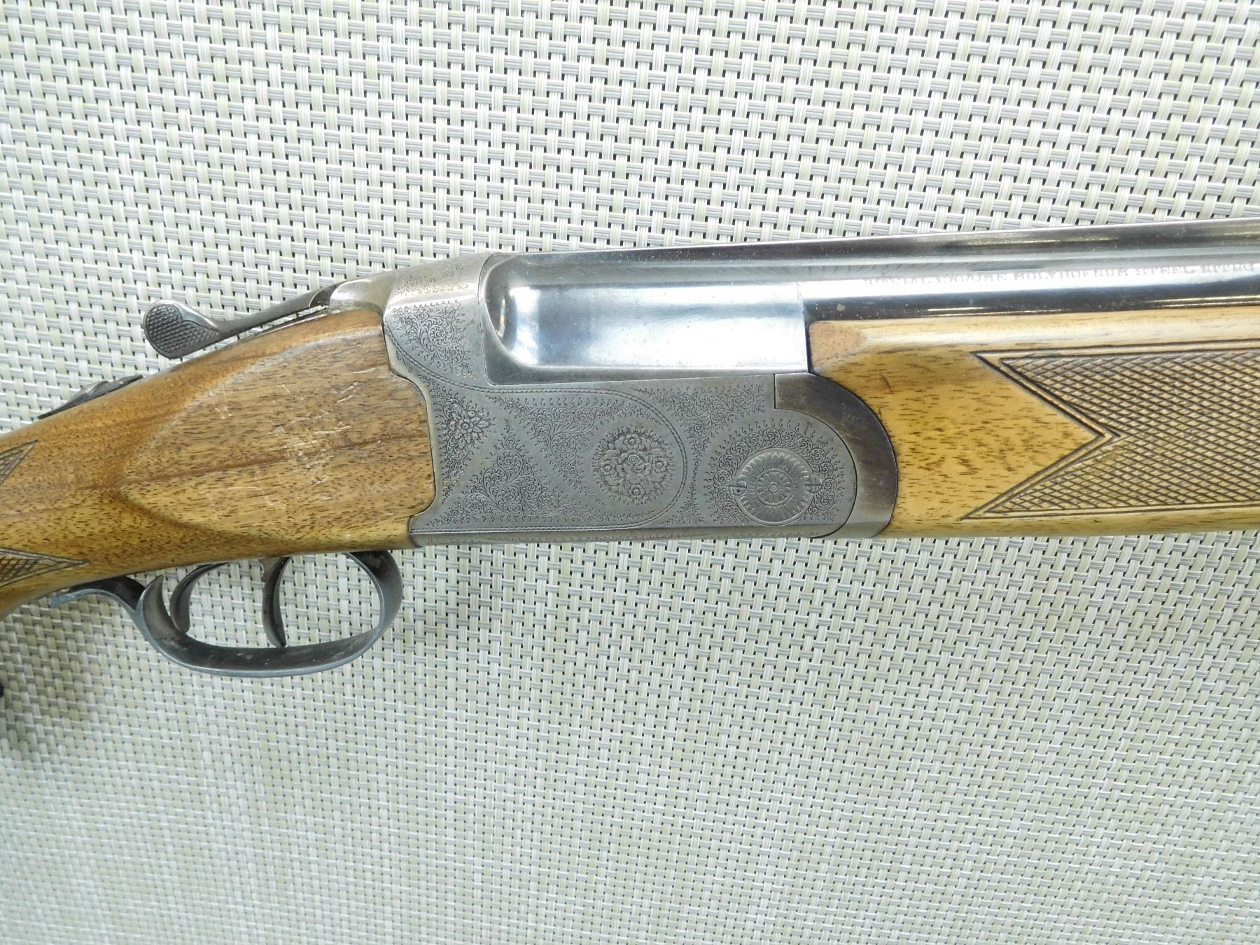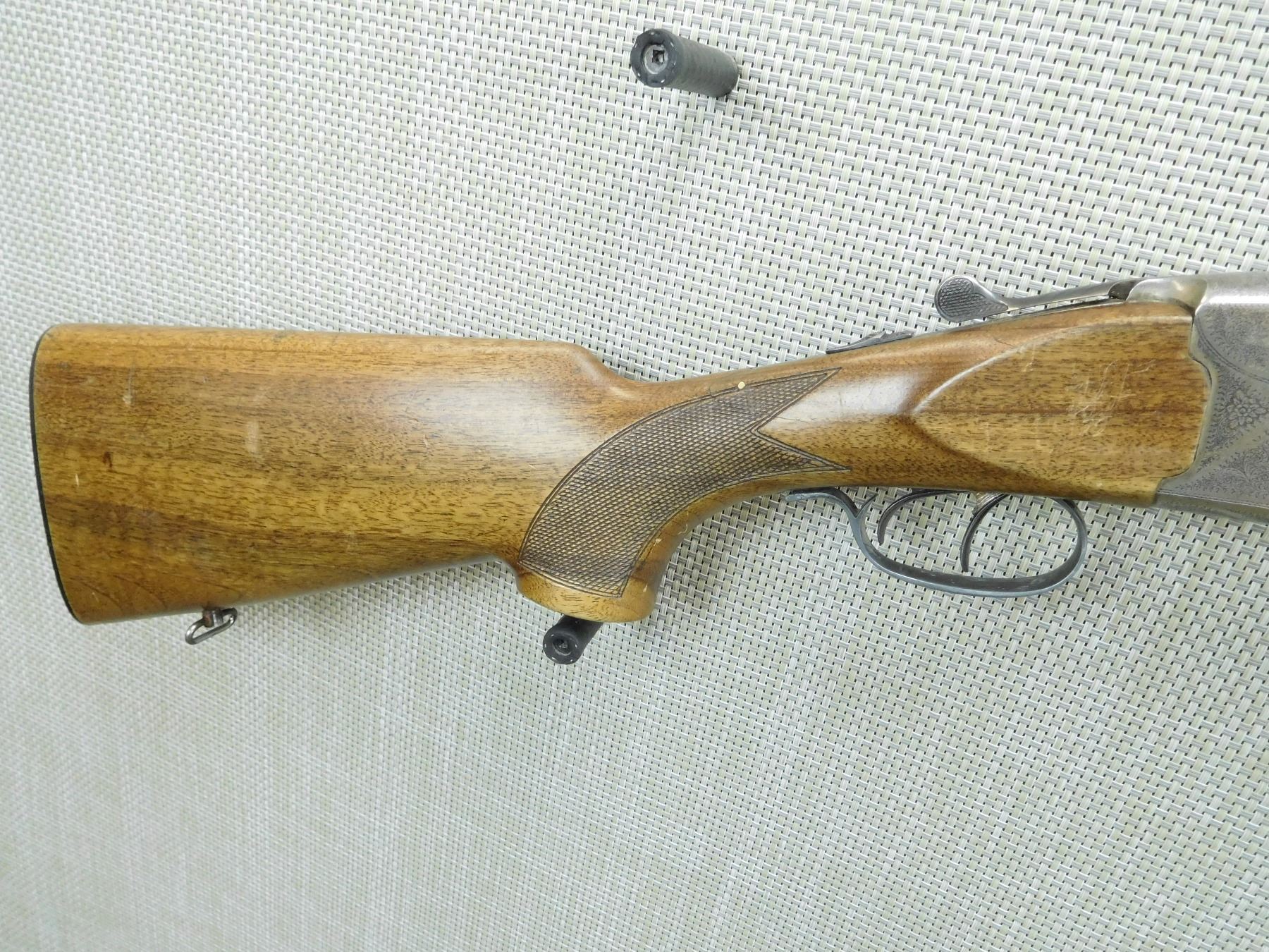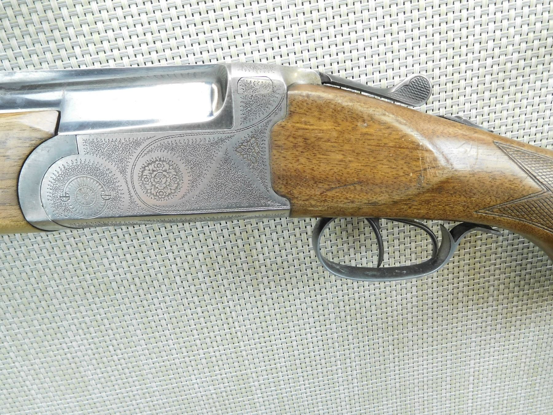 FIXED FULL AND MODIFIED CHOKES, BORES ARE VERY GOOD, VENTED RIB BARREL, CHECKERED FOREND AND PISTOL GRIP STOCK, BUTT STOCK HAS A FULL LENGTH CRACK AT THE BOTTOM, SLING SWIVELS, PLASTIC BUTT PLATE, BEAD FRONT SIGHT , SERIAL # 61520 , ACTION: OVER UNDER BREAK ACTION SHOTGUN , BARREL LENGTH: 27" , CONDITION: 6/10 , STOCK # 7690 , CLASS: CANADIAN NON RESTRICTED CLASS