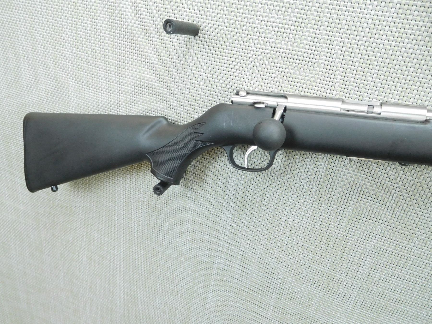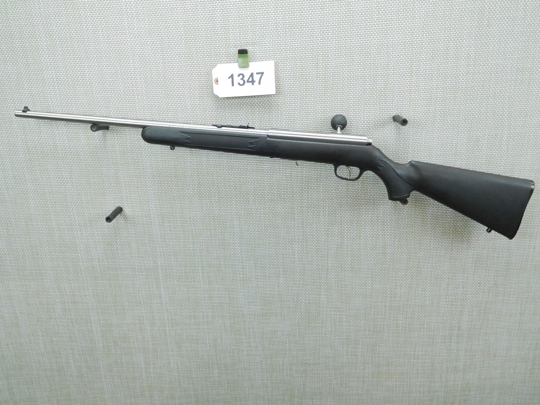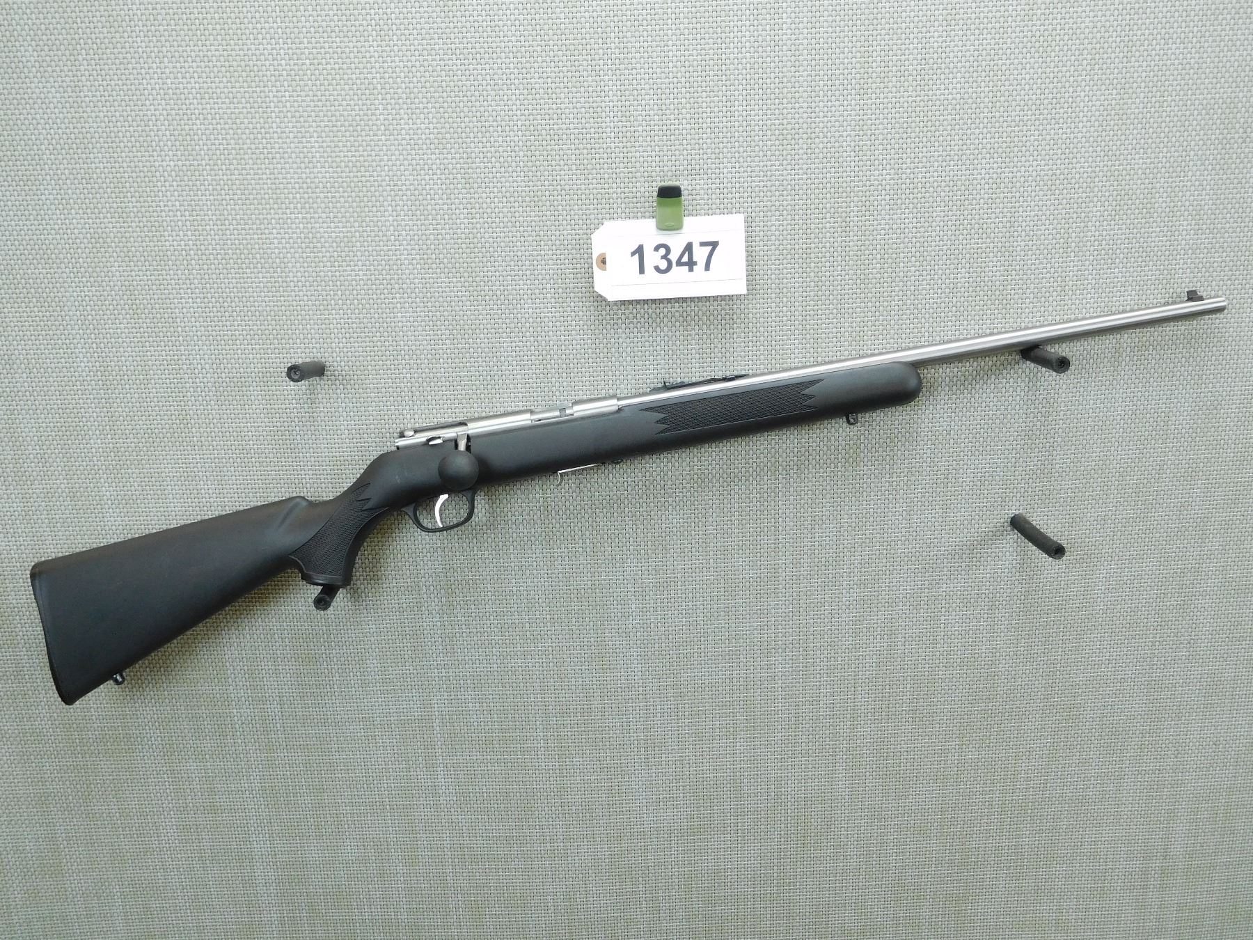 FIRES INTERMITTENTLY APPEARS TO BE A PROBLEM WITH THE BOLT, DOES NOT COME WITH MAGAZINE, BORE IS GOOD, BLACK SYNTHETIC STOCK AND BOLT KNOB, STAINLESS STEEL BARREL AND RECEIVER, DOVETAIL FRONT AND ADJUSTABLE REAR SIGHT, CHECKERED FOREND AND CAPPED PISTOL GRIP BUTT STOCK, PLASTIC BUTT PLATE, SLING SWIVEL STUDS , SERIAL # 373616 , ACTION: BOLT ACTION RIFLE , BARREL LENGTH: 21" , CONDITION: 8/10 APPEARANCE WISE, BUT IT IS MISSING THE MAG AND NOT FIRING PROPERLY , STOCK # 7703 , CLASS: CANADIAN NON RESTRICTED CLASS