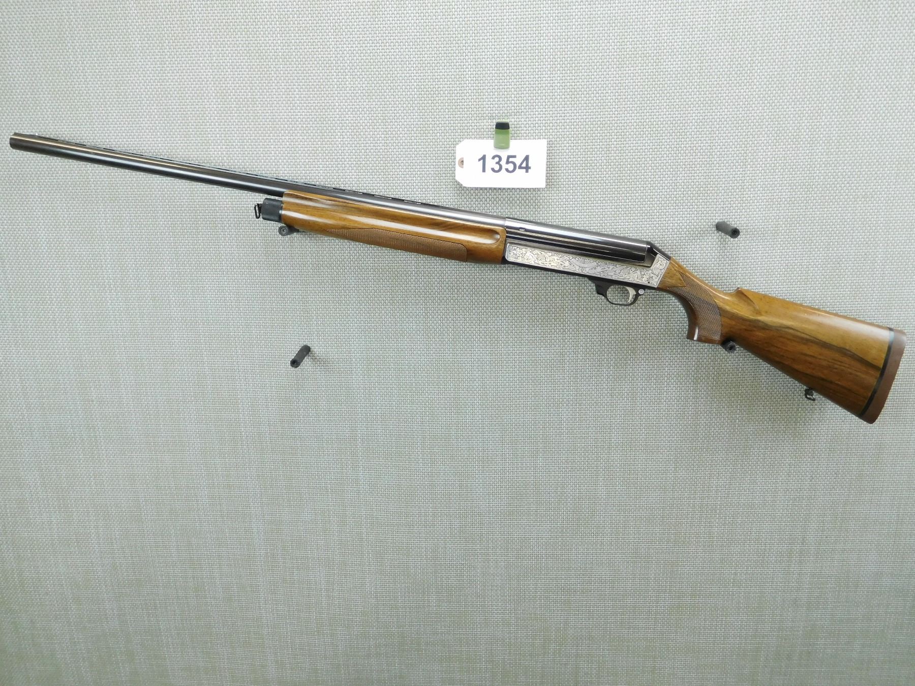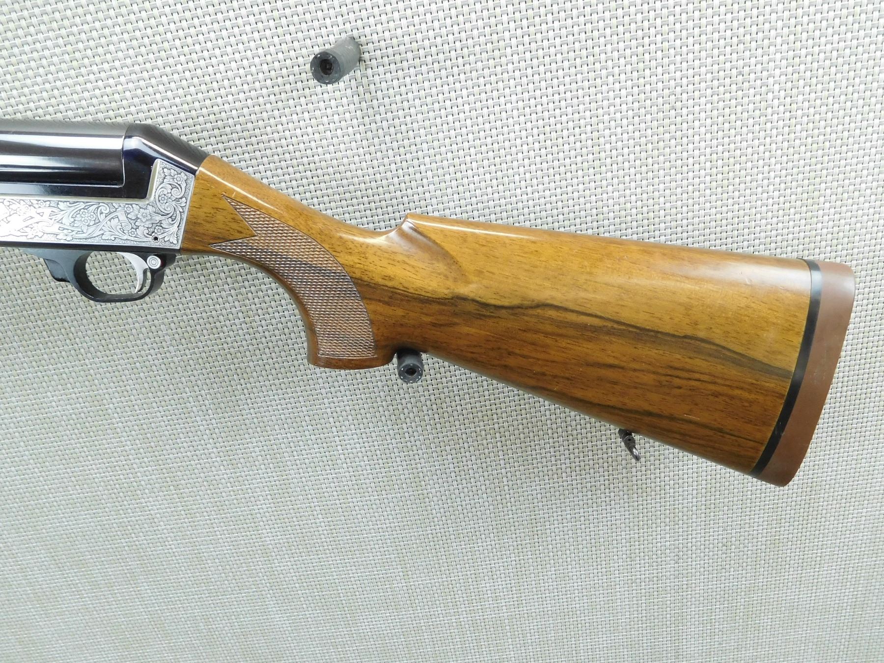 COMES WITH BOX AND PAPERS, BEAD FRONT AND VENTED RIB BARREL, FIXED FULL CHOKE, CHECKERED FOREND AND PISTOL GRIP STOCK WITH RUBBER RECOIL PAD, RICHLY ENGRAVED ALLOY RECEIVER, SLING SWIVELS, BORE IS EXCELLENT APPEARS UNFIRED, SHOWS VERY MINOR HANDLING MARKS , SERIAL # 199169 , ACTION: SEMI AUTOMATIC SHOTGUN , BARREL LENGTH: 28" , CONDITION: 9+/10 IN BOX , STOCK # 7710 , CLASS: CANADIAN NON RESTRICTED CLASS