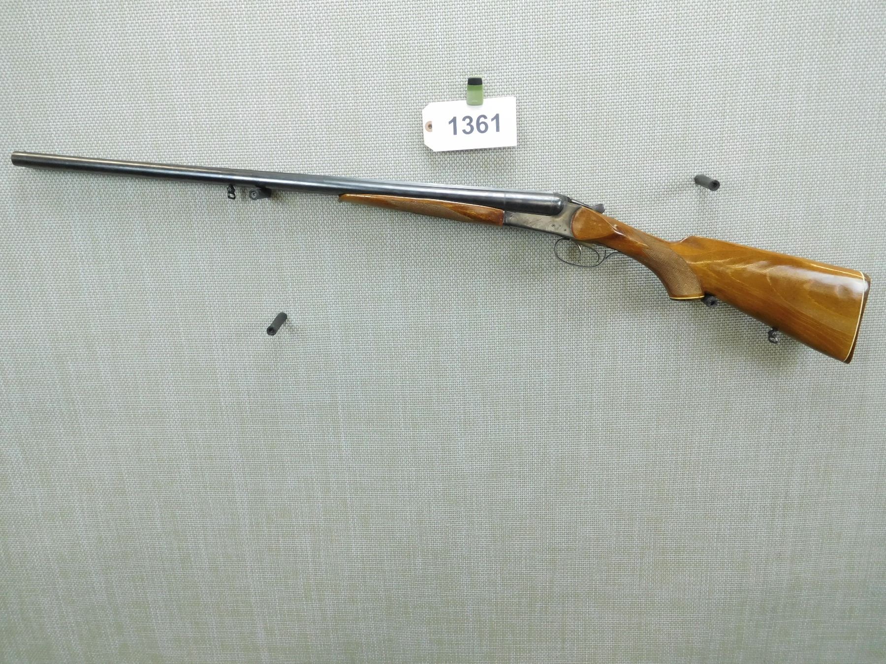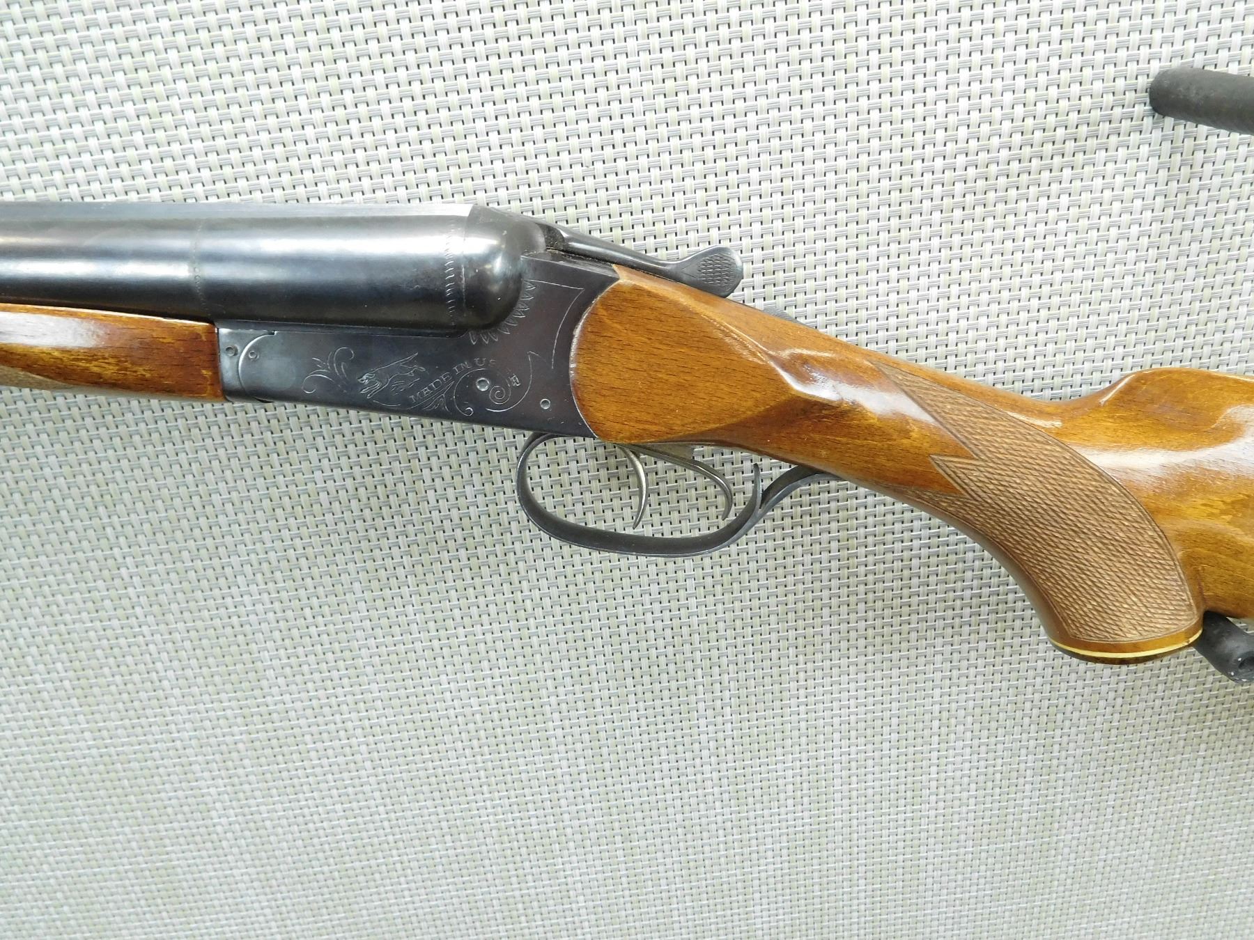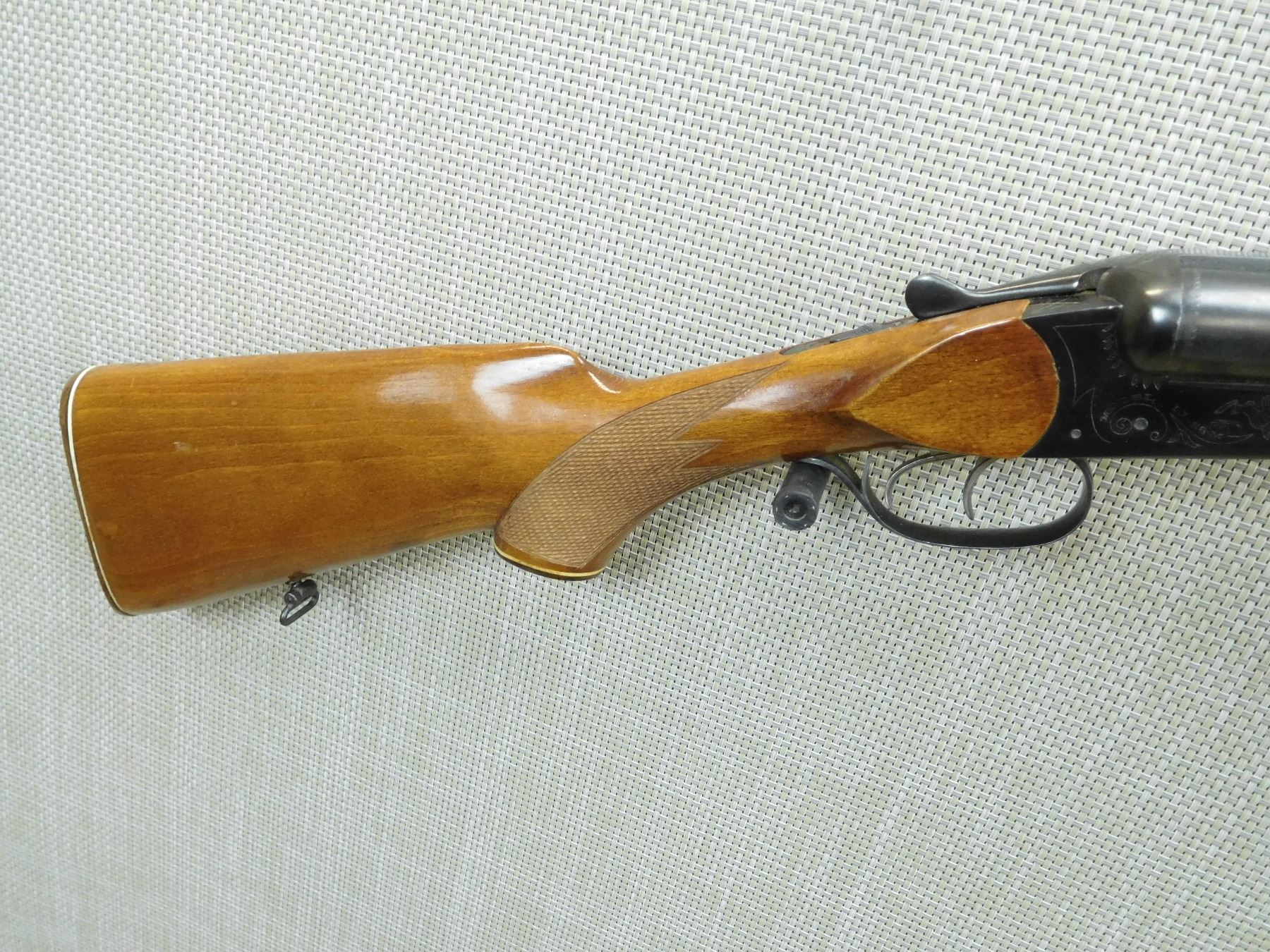 BORES ARE VERY GOOD, BEAD FRONT SIGHT, SLING SWIVELS, CHECKERED BEAVER TAIL FOREND AND CAPPED PISTOL GRIP BUTT STOCK, PLASTIC BUTT PLATE , SERIAL # K10653 , ACTION: SIDE BY SIDE BREAK ACTION SHOTGUN , BARREL LENGTH: 28 3/4" , CONDITION: 8/10 , STOCK # 7717 , CLASS: CANADIAN NON RESTRICTED CLASS