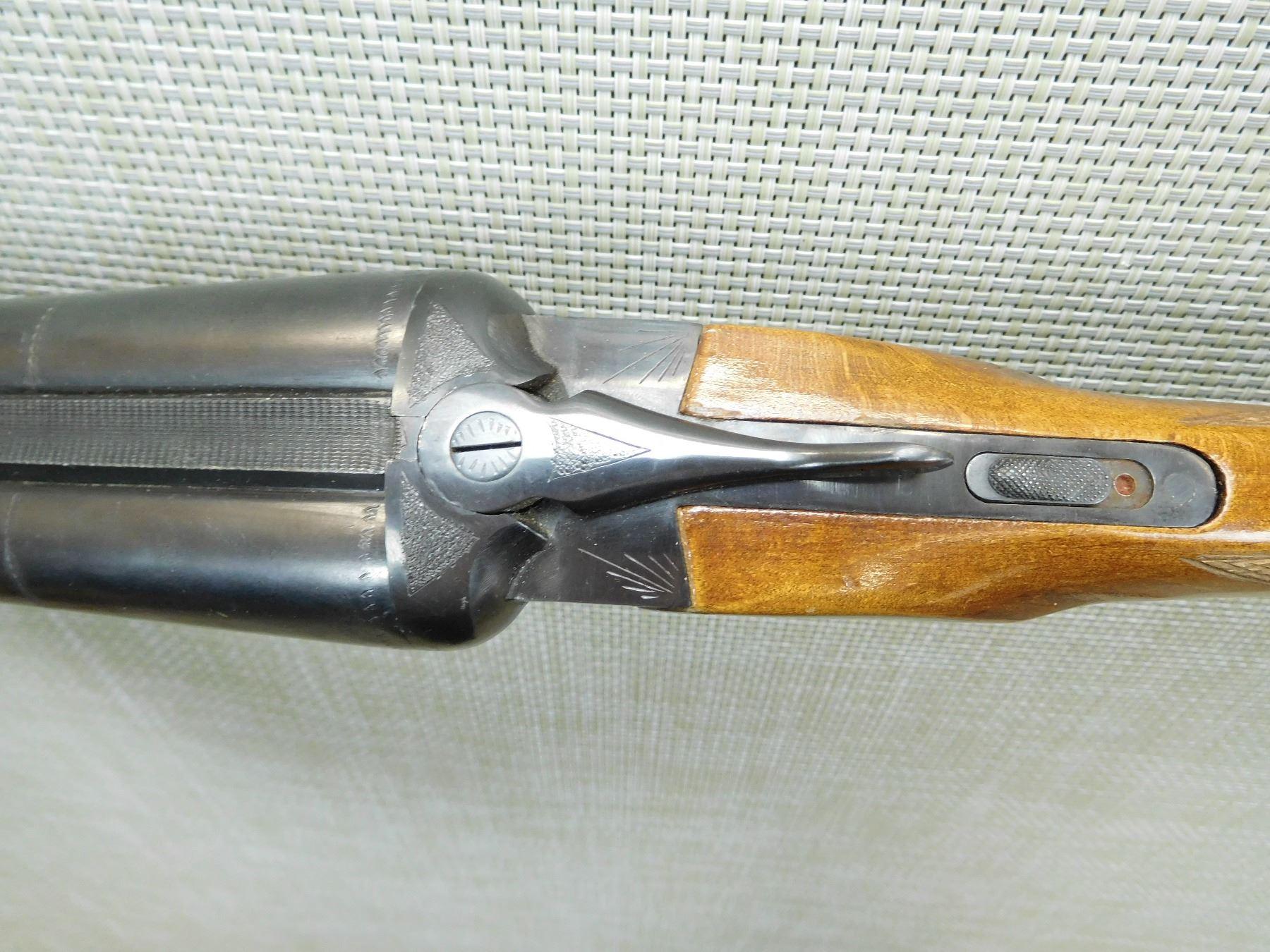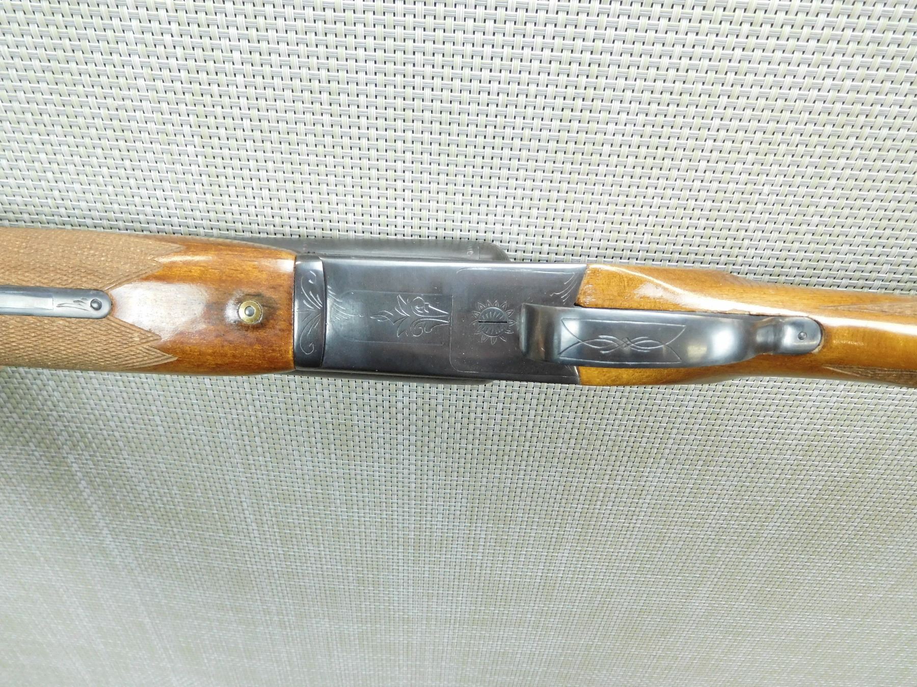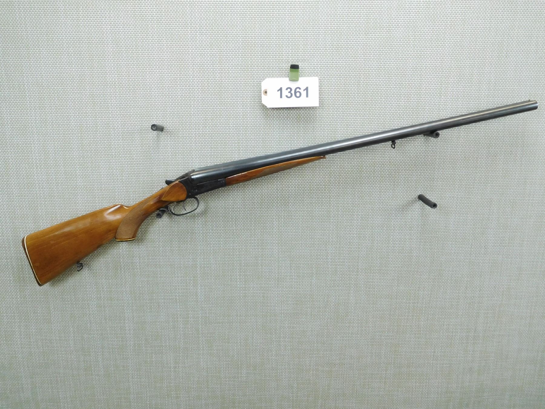 BORES ARE VERY GOOD, BEAD FRONT SIGHT, SLING SWIVELS, CHECKERED BEAVER TAIL FOREND AND CAPPED PISTOL GRIP BUTT STOCK, PLASTIC BUTT PLATE , SERIAL # K10653 , ACTION: SIDE BY SIDE BREAK ACTION SHOTGUN , BARREL LENGTH: 28 3/4" , CONDITION: 8/10 , STOCK # 7717 , CLASS: CANADIAN NON RESTRICTED CLASS