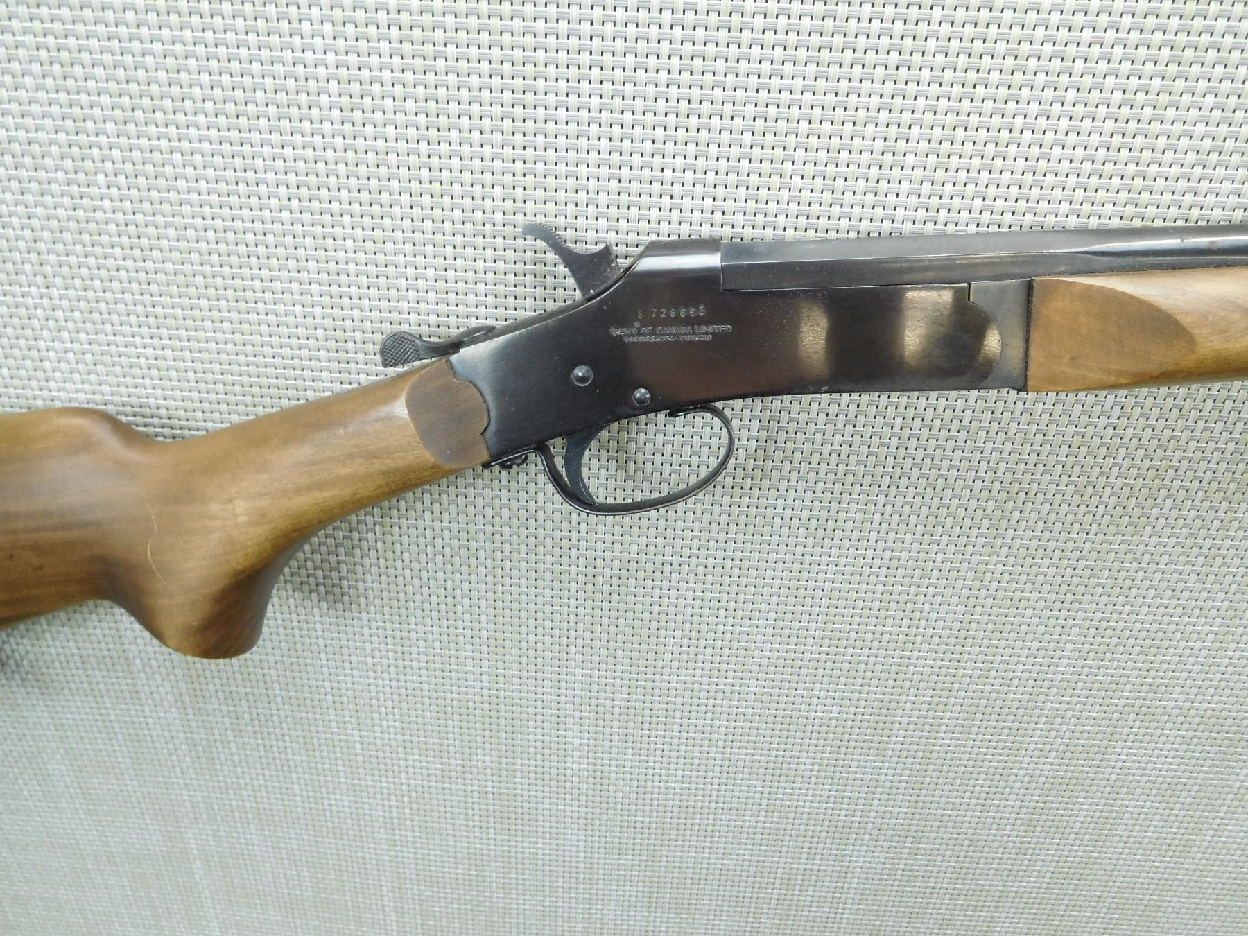 BORE IS VERY GOOD, BEAD FRONT SIGHT, SLING SWIVELS, PLASTIC BUTT PAD , SERIAL # 3585 , ACTION: SINGLE SHOT BREAK ACTION SHOTGUN , BARREL LENGTH: 28" , CONDITION: 8/10 , STOCK # 7720 , CLASS: CANADIAN NON RESTRICTED CLASS