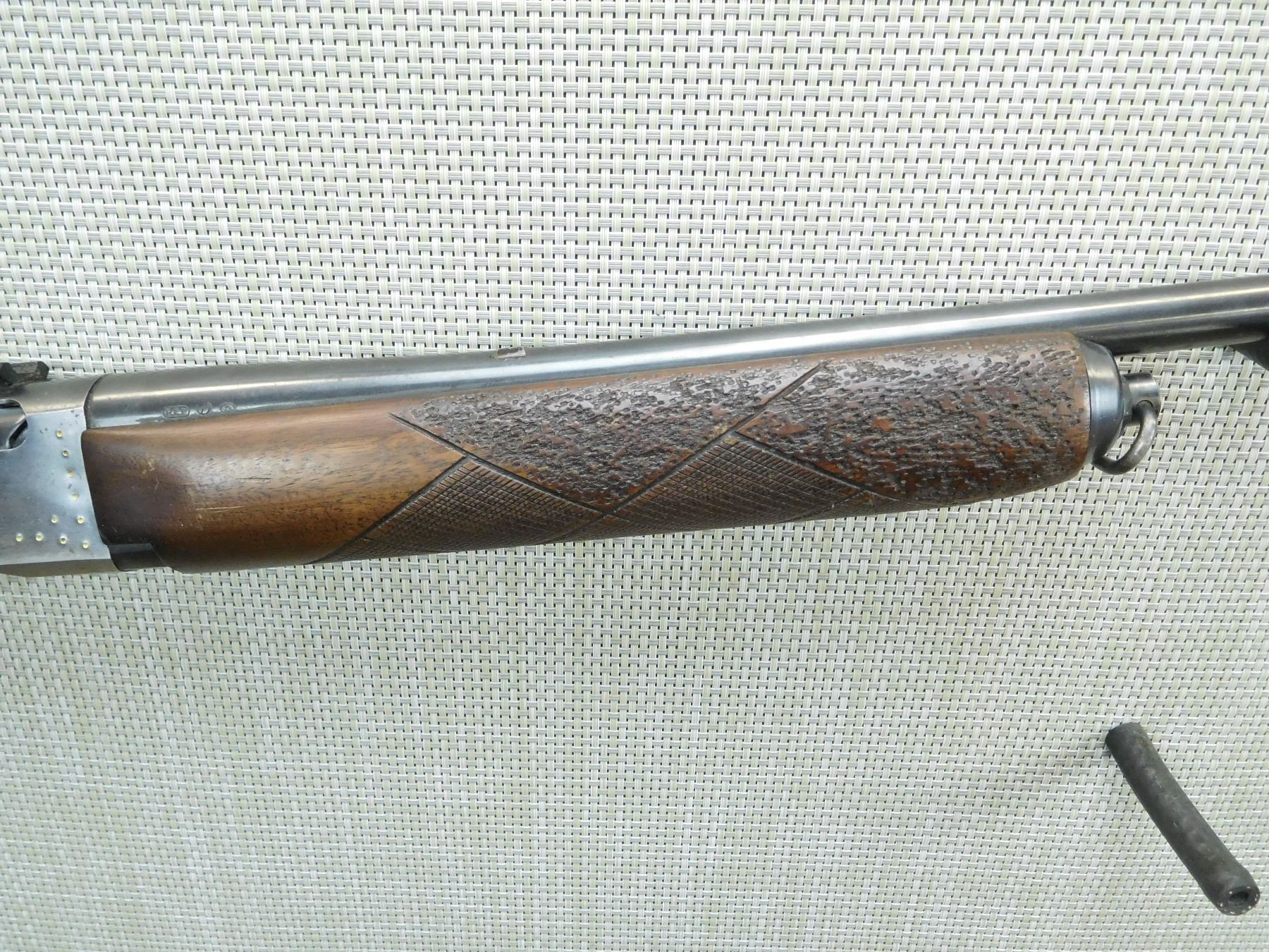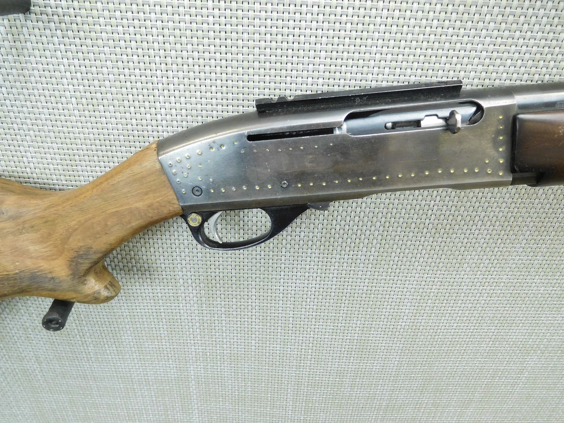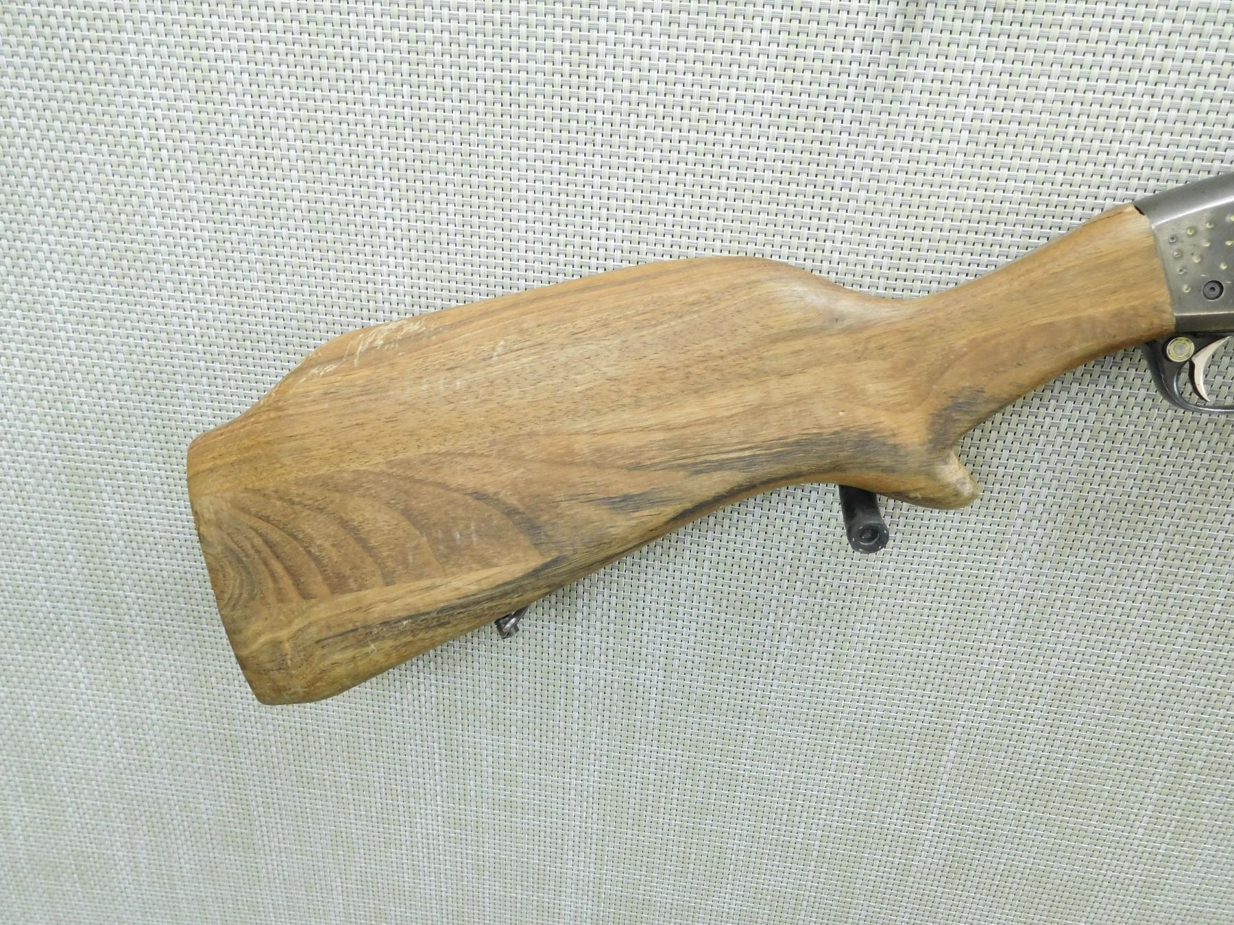 DOES NOT COME WITH MAGAZINE, DRILLED AND TAPPED WITH A SCOPE RAIL, ORIGINAL SIGHTS REMOVED, REPLACED BUTT STOCK IS CRACKED AT THE WRIST, SLING SWIVELS, RECEIVER IS AMATURE ENGRAVED, BORE IS DARK, SHOWS EXTENSIVE HANDLING MARK WEAR, THERE IS NO BUTT PLATE , SERIAL # 192593 , ACTION: SEMI AUTOMATIC RIFLE , BARREL LENGTH: 20" , CONDITION: 3/10 , STOCK # 7724 , CLASS: CANADIAN NON RESTRICTED CLASS