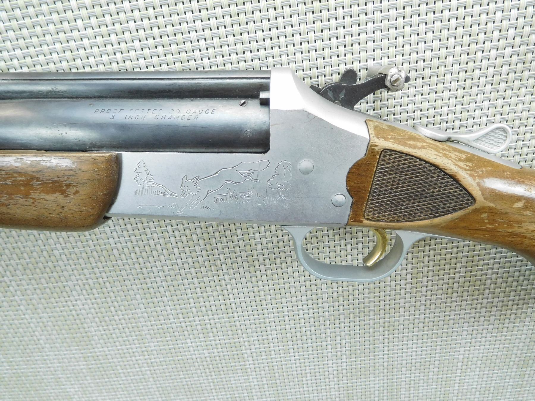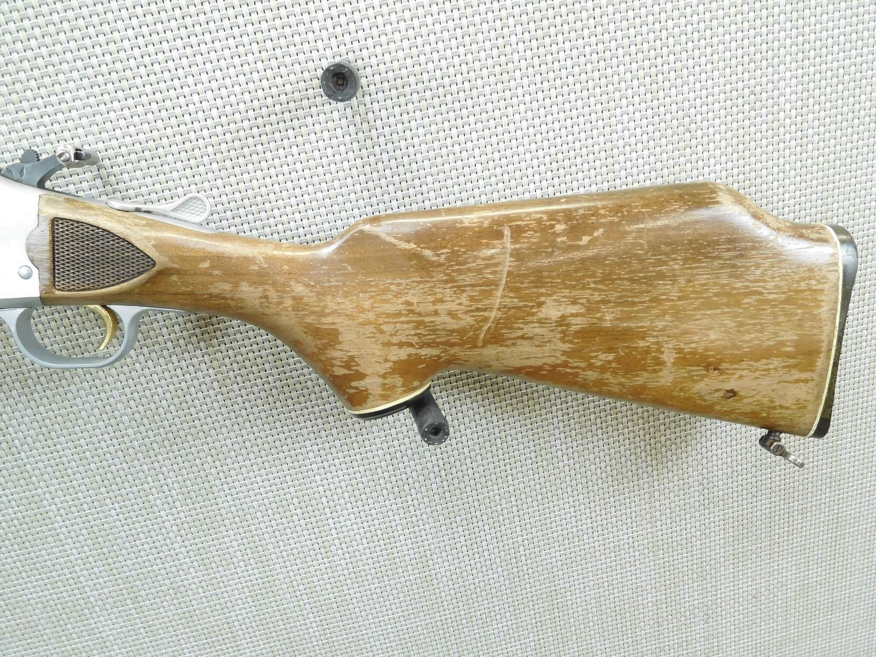 BORE IS GOOD, SHOWS SOME HANDLING MARKS, SLING SWIVELS, TRIGGER HAS COCKING EXTENSION, MISSING THE REAR SIGHT, RAMP FRONT SIGHT , SERIAL # N/A , ACTION: COMBINATION OVER UNDER , BARREL LENGTH: 24" , CONDITION: 5/10 , STOCK # 7730 , CLASS: CANADIAN NON RESTRICTED CLASS