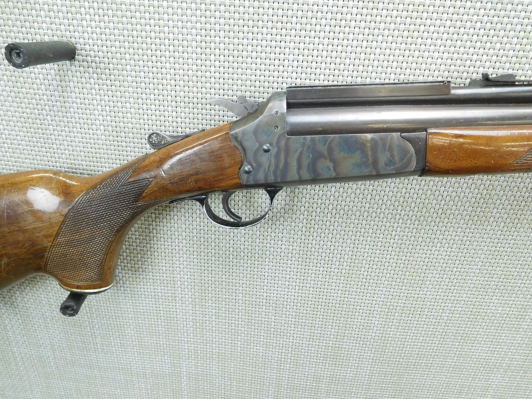 BORE IS GOOD, RAMP FRONT AND ADJUSTABLE REAR SIGHT, HAS SCOPE RAIL ADDED, CHECKERED FOREND AND CAPPED PISTOL GRIP BUTT STOCK WITH SLING SWIVELS, PLASTIC BUTT PLATE , SERIAL # 62003 , ACTION: COMBINATION OVER UNDER , BARREL LENGTH: 23" , CONDITION: 6/10 , STOCK # 7731 , CLASS: CANADIAN NON RESTRICTED CLASS