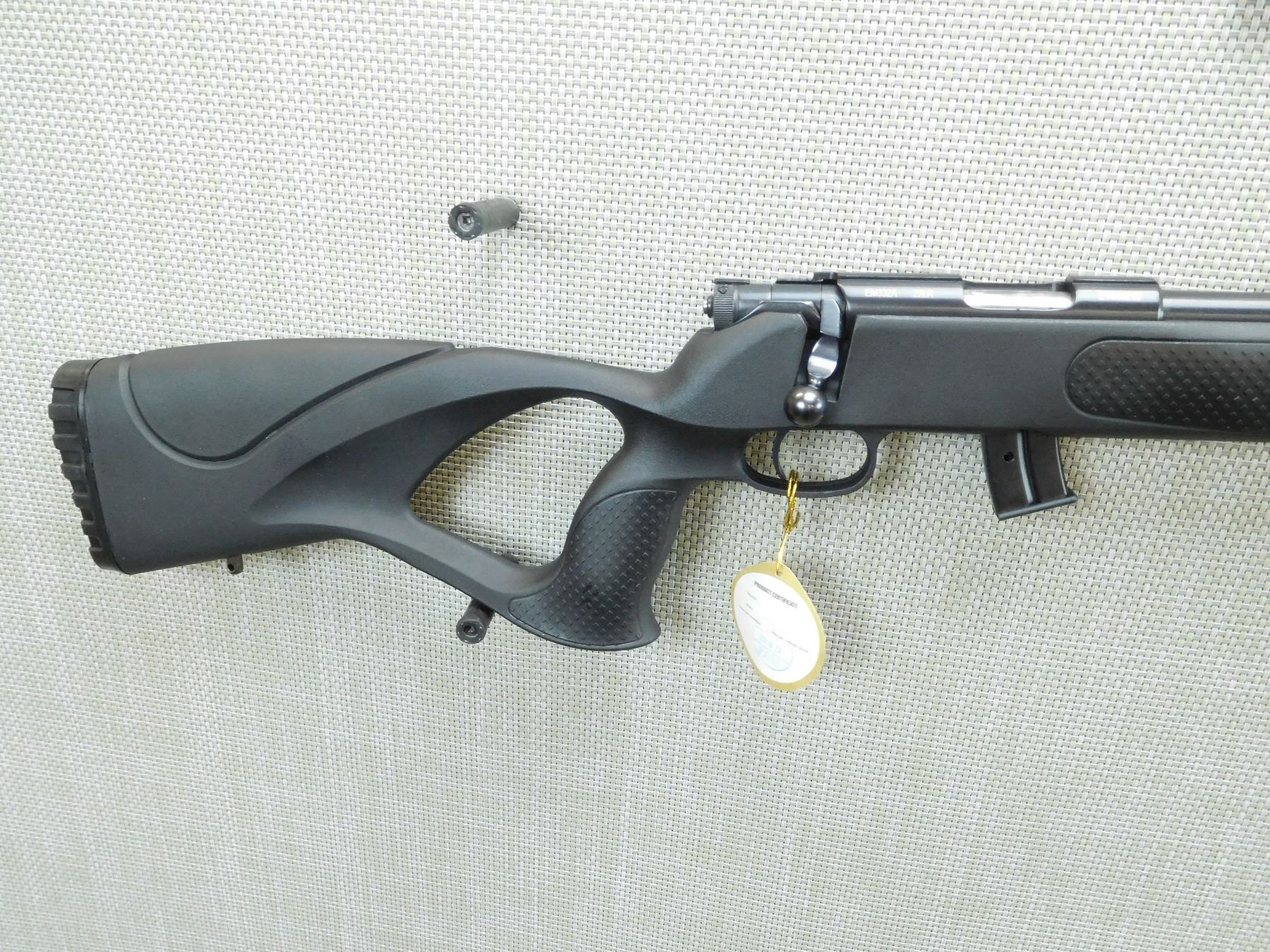 COMES WITH BOX AND MANUAL, RAMP FRONT AND ADJUSTABLE REAR SIGHTS, SYNTHETIC THUMBHOLE STOCK WITH FULL PISTOL GRIP, SLING SWIVEL STUDS, RUBBER BUTT PAD , SERIAL # E1600292 , ACTION: BOLT ACTION RIFLE , BARREL LENGTH: 20" , CONDITION: NEW IN THE BOX , STOCK # 7741 , CLASS: CANADIAN NON RESTRICTED CLASS