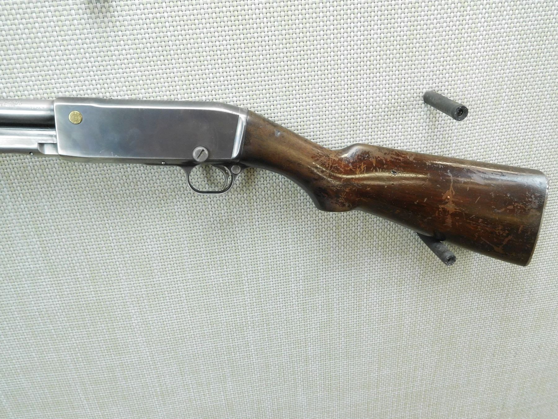 BORE IS GOOD, SHOWS EXTENSIVE HANDLING MARKS, STEEL BUTT PLATE HAS RUST ON IT, DOVETAIL FRONT AND FULLY ADJUTABLE REAR SIGHTS , SERIAL # C76801 , ACTION: PUMP ACTION RIFLE , BARREL LENGTH: 22" , CONDITION: 5/10 , STOCK # 7750 , CLASS: CANADIAN NON RESTRICTED CLASS