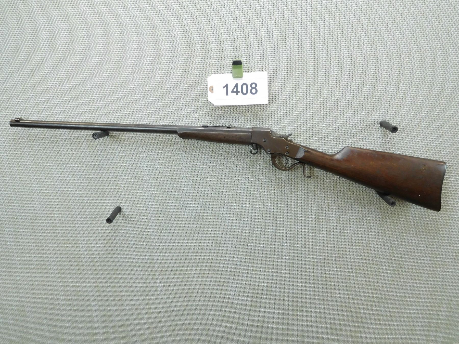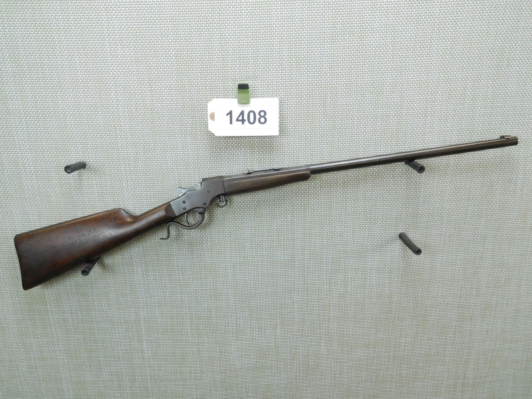BORE IS DARK, BLADE FRONT AND ADJUSTABLE REAR SIGHT MISSING THE ELEVATOR, SHOWS SOME HANDLING MARKS, PLASTIC BUT PLATE , SERIAL # N/A , ACTION: FALLING BLOCK ACTION , BARREL LENGTH: 22" , CONDITION: 4/10 , STOCK # 7764 , CLASS: CANADIAN NON RESTRICTED CLASS