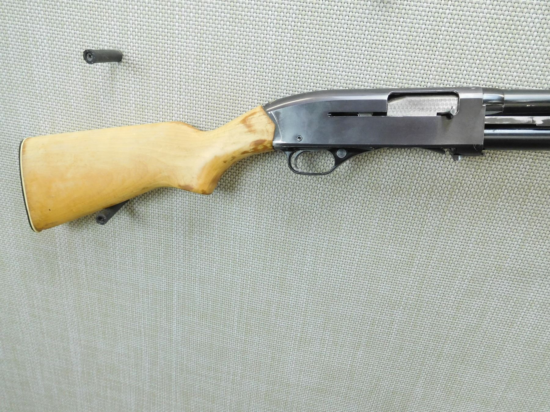 BORE IS DARK, FIXED FULL CHOKE, PITTED AT MUZZLE, MISSING FOREND WOOD, BEAD FRONT SIGHT, REPLACED BUTT STOCK, SHOWS SOME HANDLING MARKS, MAGAZINE TUBE IS DENTED , SERIAL # 101455 , ACTION: SEMI AUTOMATIC SHOTGUN , BARREL LENGTH: 30" , CONDITION: 3/10 , STOCK # 7769 , CLASS: CANADIAN NON RESTRICTED CLASS