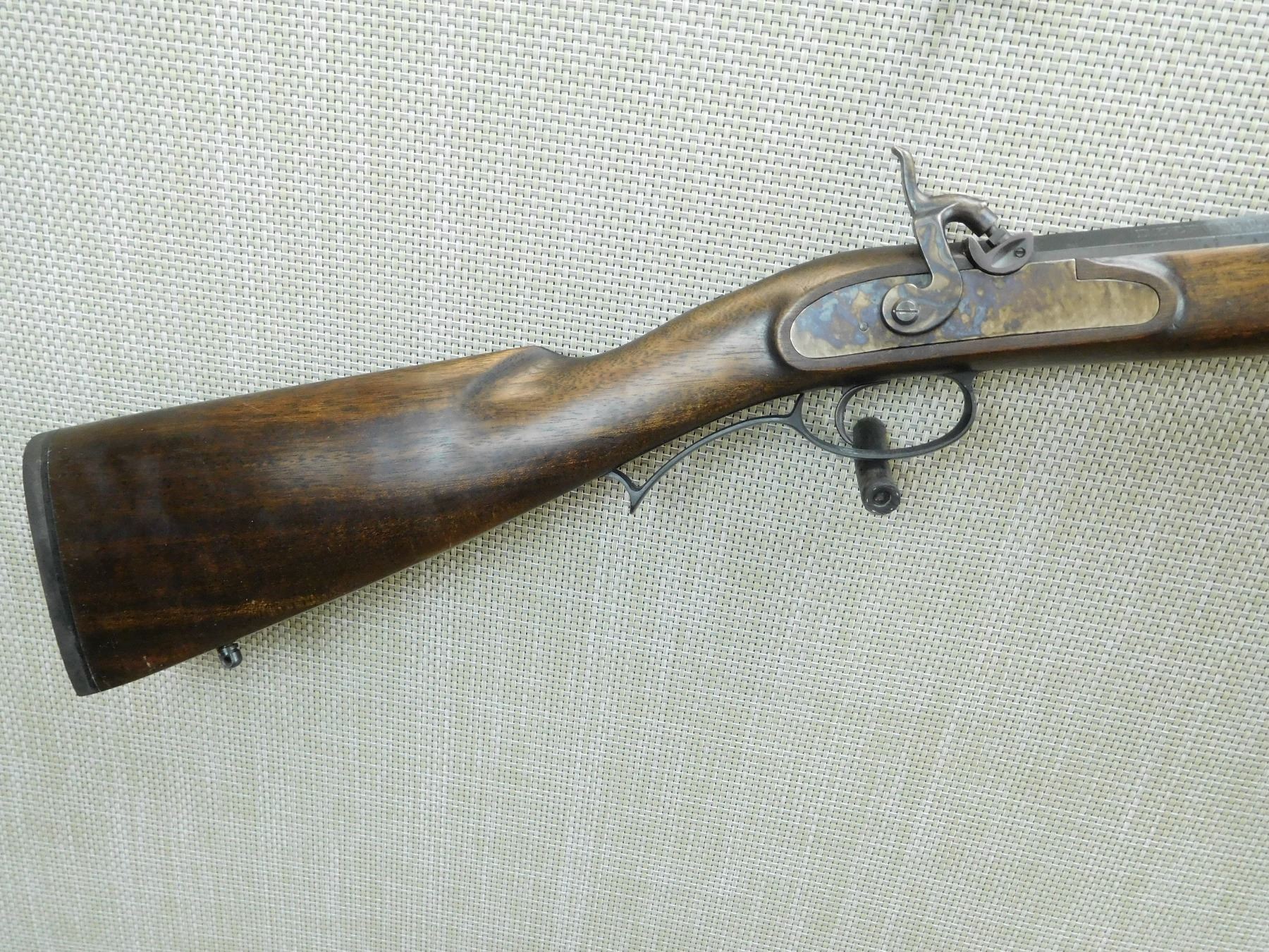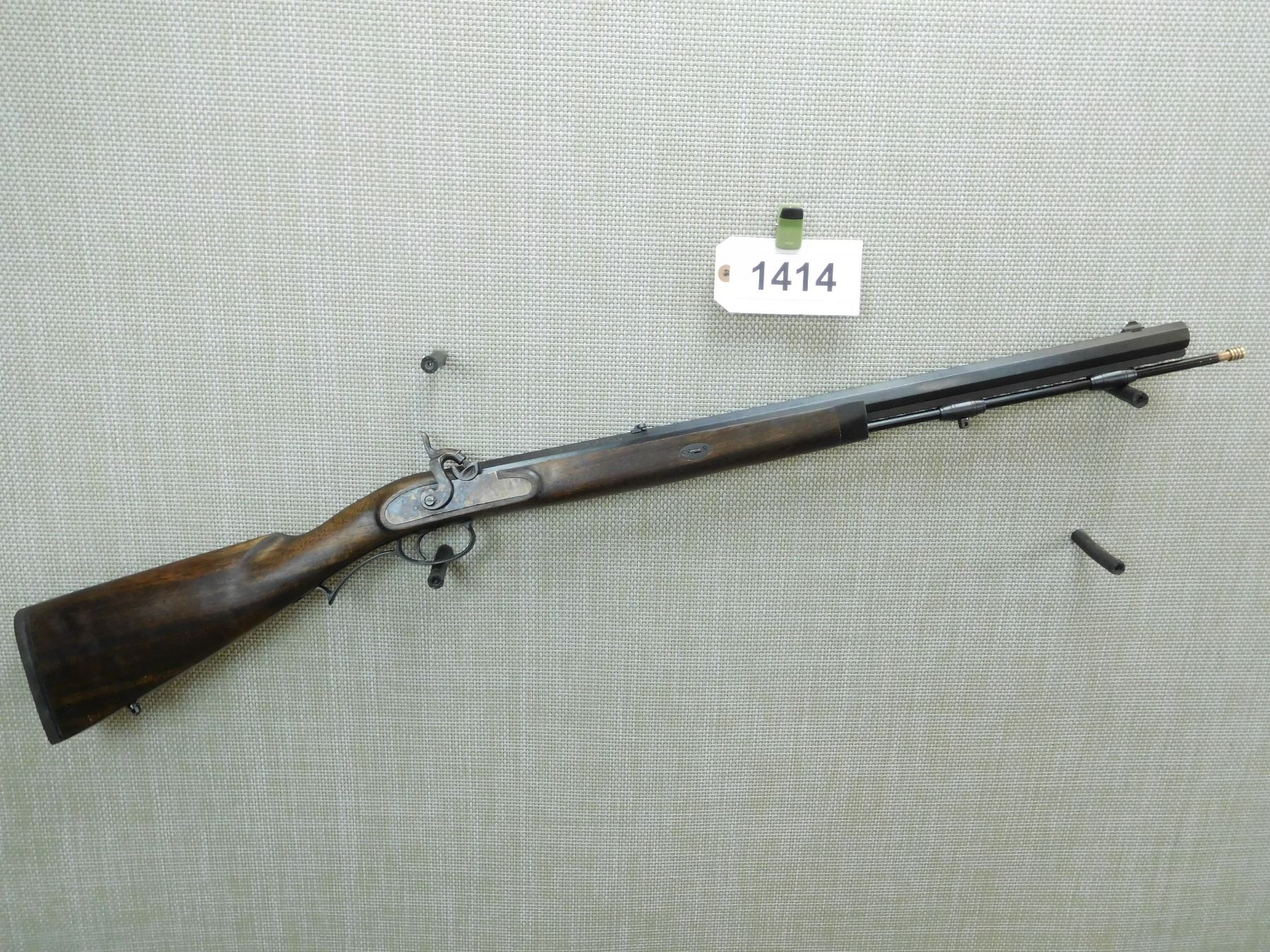 OCTAGONAL BARREL, GOOD BORE, WHITE DOT FRONT AND FLIP ADJUSTABLE REAR SIGHT, FINGER GROOVED TRIGGER GUARD, HARDWOOD STOCK WITH RAISED CHEEK PIECE, SLING SWIVEL STUDS, RUBBER BUTT PLATE, CASE HARDNENED RECEIVER AND HAMMER , SERIAL # 318304 , ACTION: PERCUSSION RIFLE , BARREL LENGTH: 24" , CONDITION: 8/10 , STOCK # 7770 , CLASS: CANADIAN NON RESTRICTED CLASS
