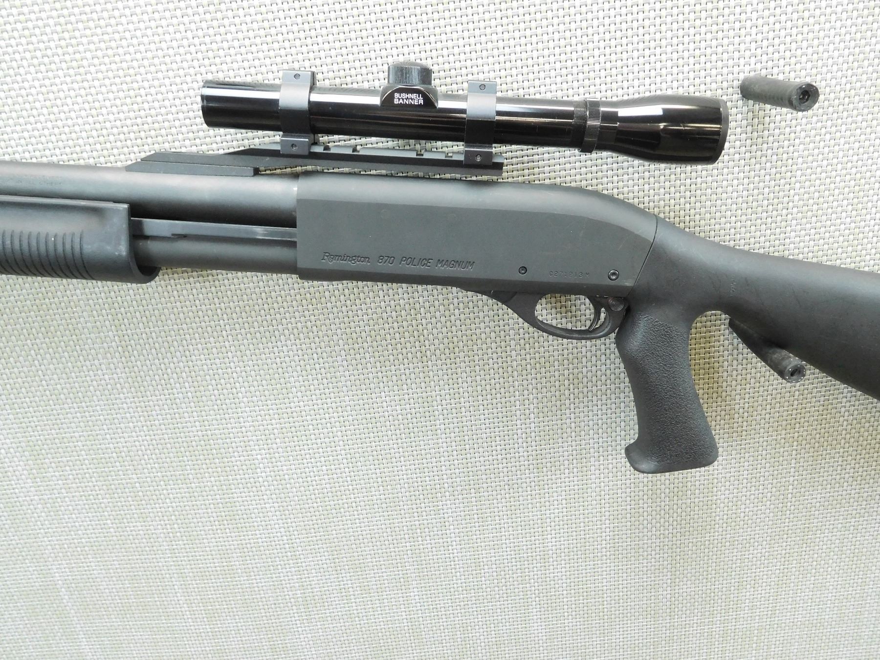 BORE IS GOOD, EXTERNAL REMOVABLE CHOKE, SYNTHETIC STOCK WITH FULL PISTOL GRIP, NO SIGHTS HAS A SCOPE RAIL AND A BUSHNELL BANNER SCOPE, SLING SWIVEL LOOPS, RUBBER BUTT PLATE, SHOWS SOME HANDLING MARKS , SERIAL # C271213M , ACTION: PUMP ACTION SHOTGUN , BARREL LENGTH: 20" , CONDITION: 6/10 , STOCK # 7773 , CLASS: CANADIAN NON RESTRICTED CLASS
