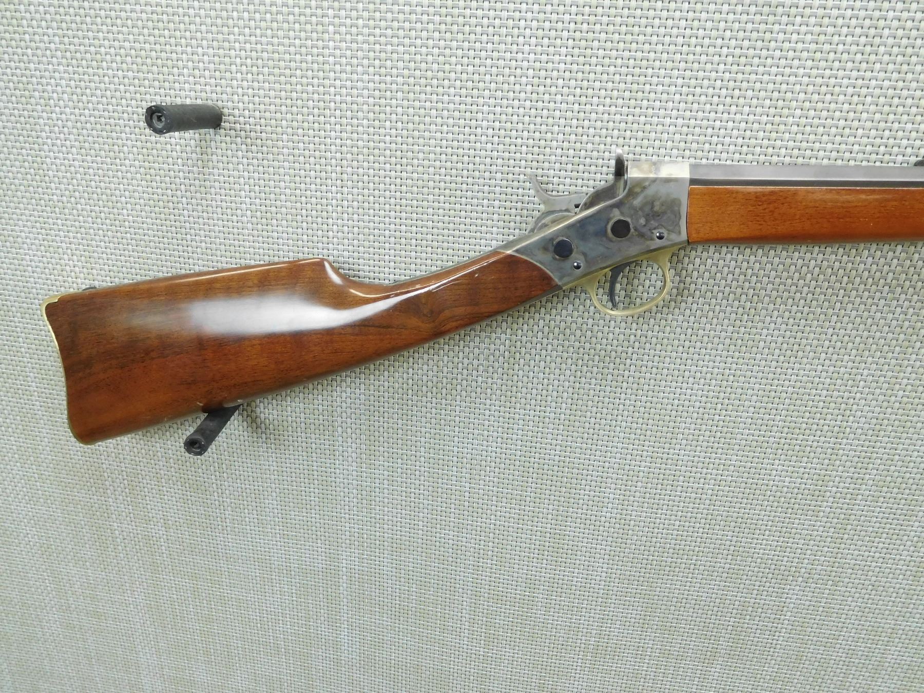 COMES WITH BOX, EXCELLENT BORE, DOVETAIL FRONT AND ADJUSTABLE REAR SIGHT ON AN OCTAGONAL BARREL SHOWS SOME HANDLING MARKS, CASE HARDENED RECEIVER AND HAMMER, BRASS TRIGGER GUARD AND BUTT PLATE , SERIAL # S02345 , ACTION: ROLLING BLOCK RIFLE , BARREL LENGTH: 26" , CONDITION: 9/10 , STOCK # 7778 , CLASS: CANADIAN NON RESTRICTED CLASS