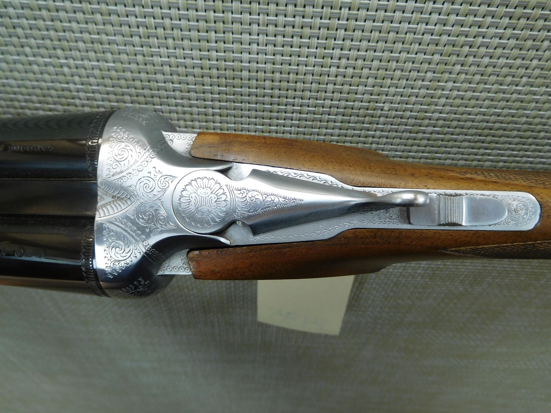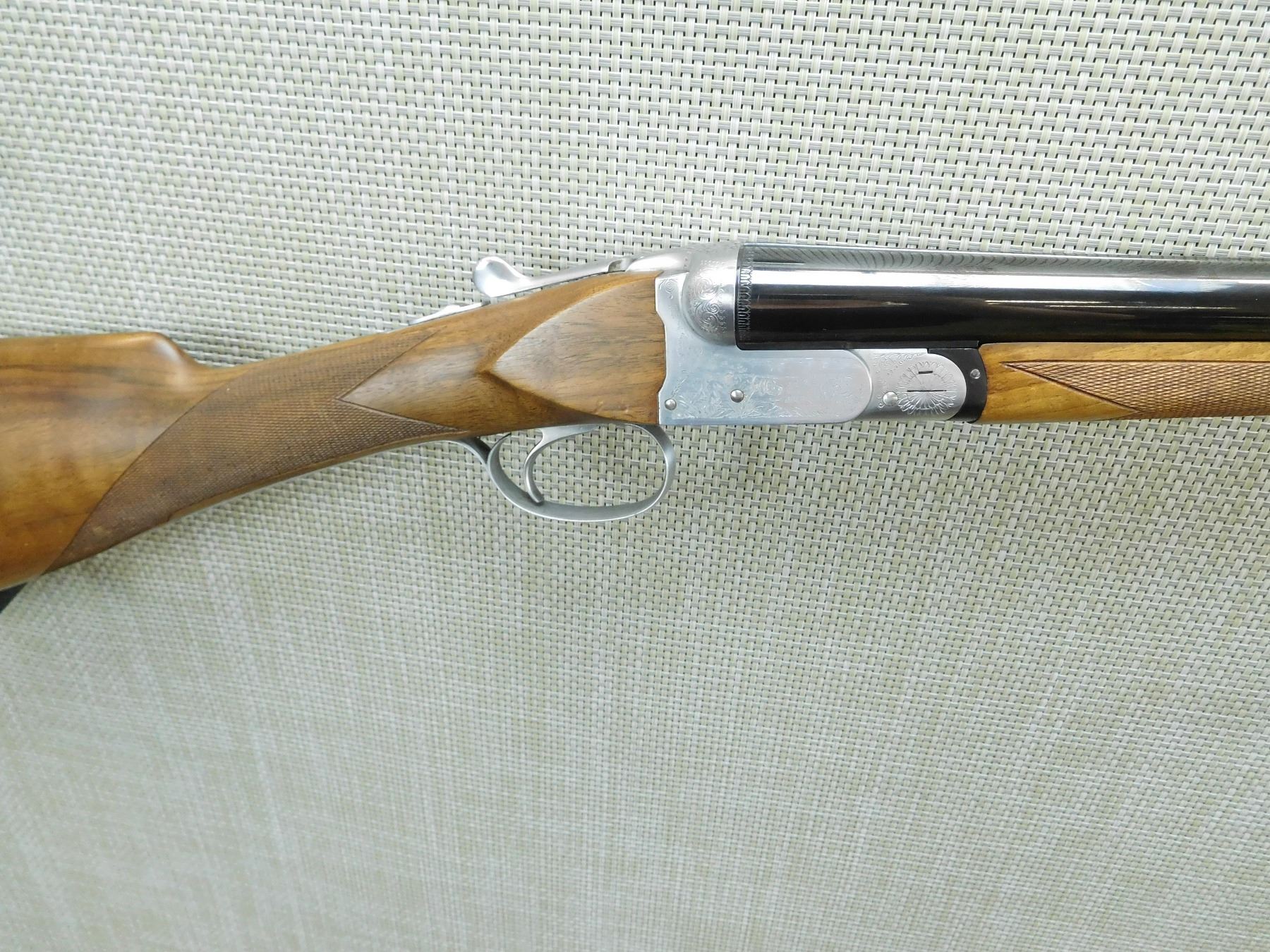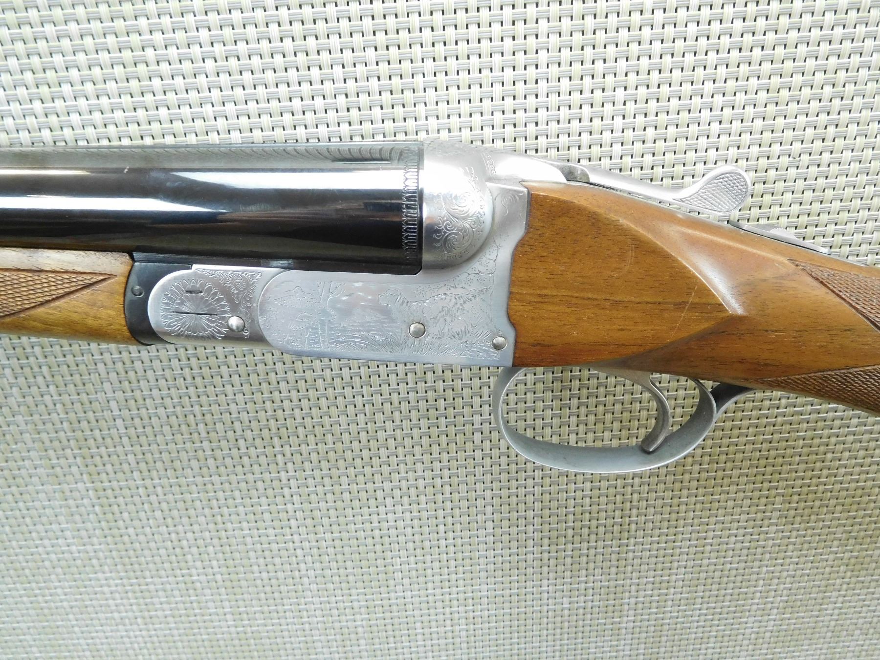 MODIFIED AND FULL FIXED CHOKES, CHECKERED FOREND AND CHECKERED STRAIGHT STOCK WITH RUBBER BUTT PAD, WHITE BEAD FRONT SIGHT , SERIAL # 214652 , ACTION: SIDE BY SIDE BREAK ACTION SHOTGUN , BARREL LENGTH: 24" , CONDITION: 9/10 , STOCK # 7791 , CLASS: CANADIAN NON RESTRICTED CLASS