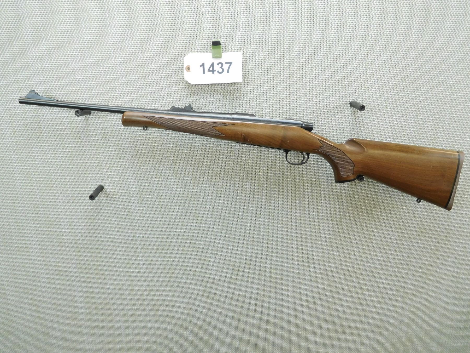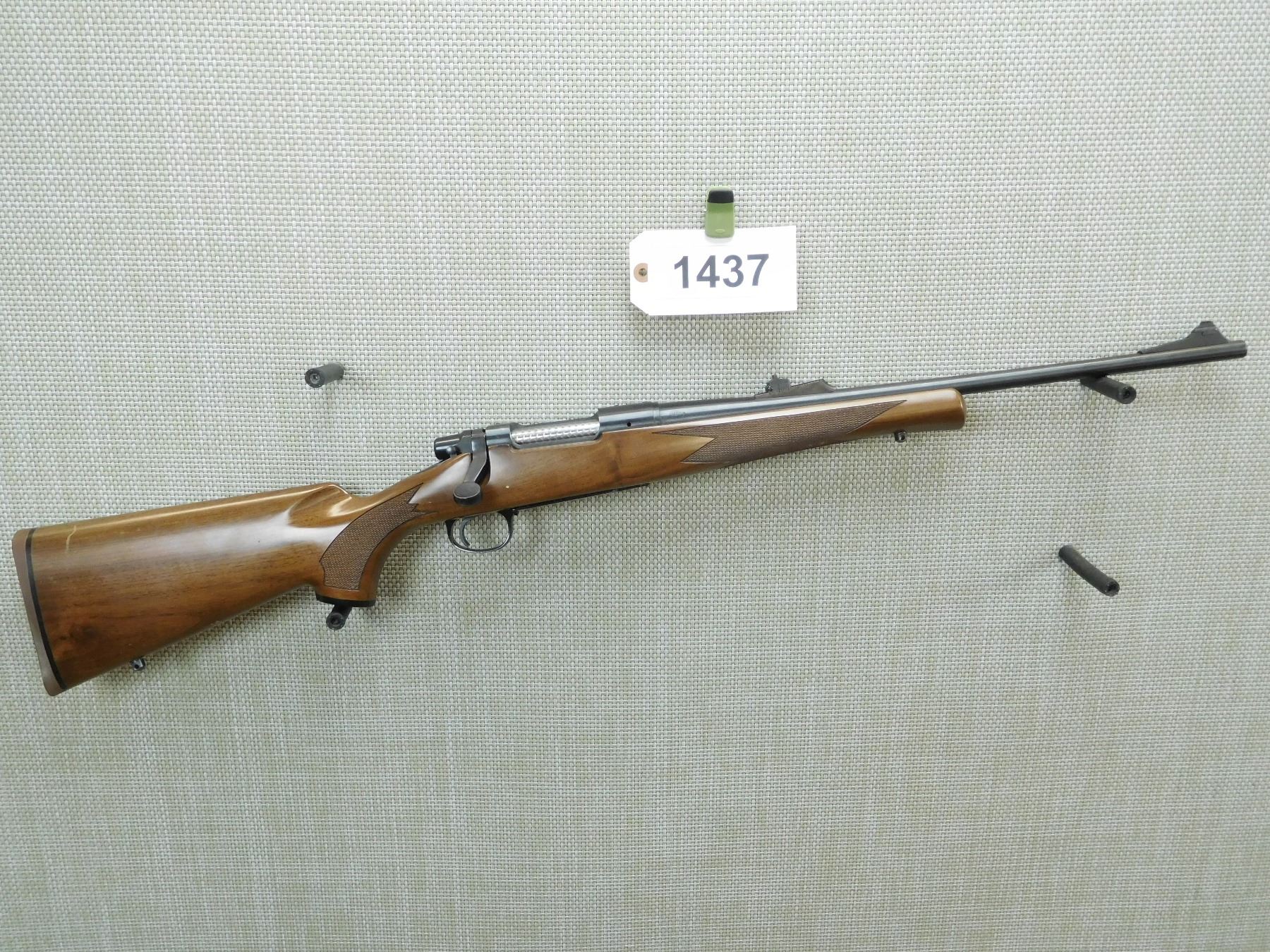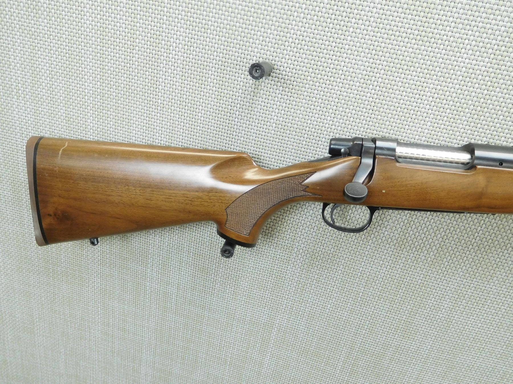 BORE IS VERY GOOD, RAMP FRONT AND ADJUSTABLE REAR SIGHT, DRILLED AND TAPPED FOR SCOPE MOUNTS, CHECKERED SCHNOBEL FOREND, WITH CAPPED PISTOL GRIP BUTT STOCK, SHOWS SOME HANDLING MARKS, RUBBER RECOIL PAD, SLING SWIVEL LOOPS , SERIAL # 7734203 , ACTION: BOLT ACTION RIFLE , BARREL LENGTH: 19" , CONDITION: 8/10 , STOCK # 7793 , CLASS: CANADIAN NON RESTRICTED CLASS