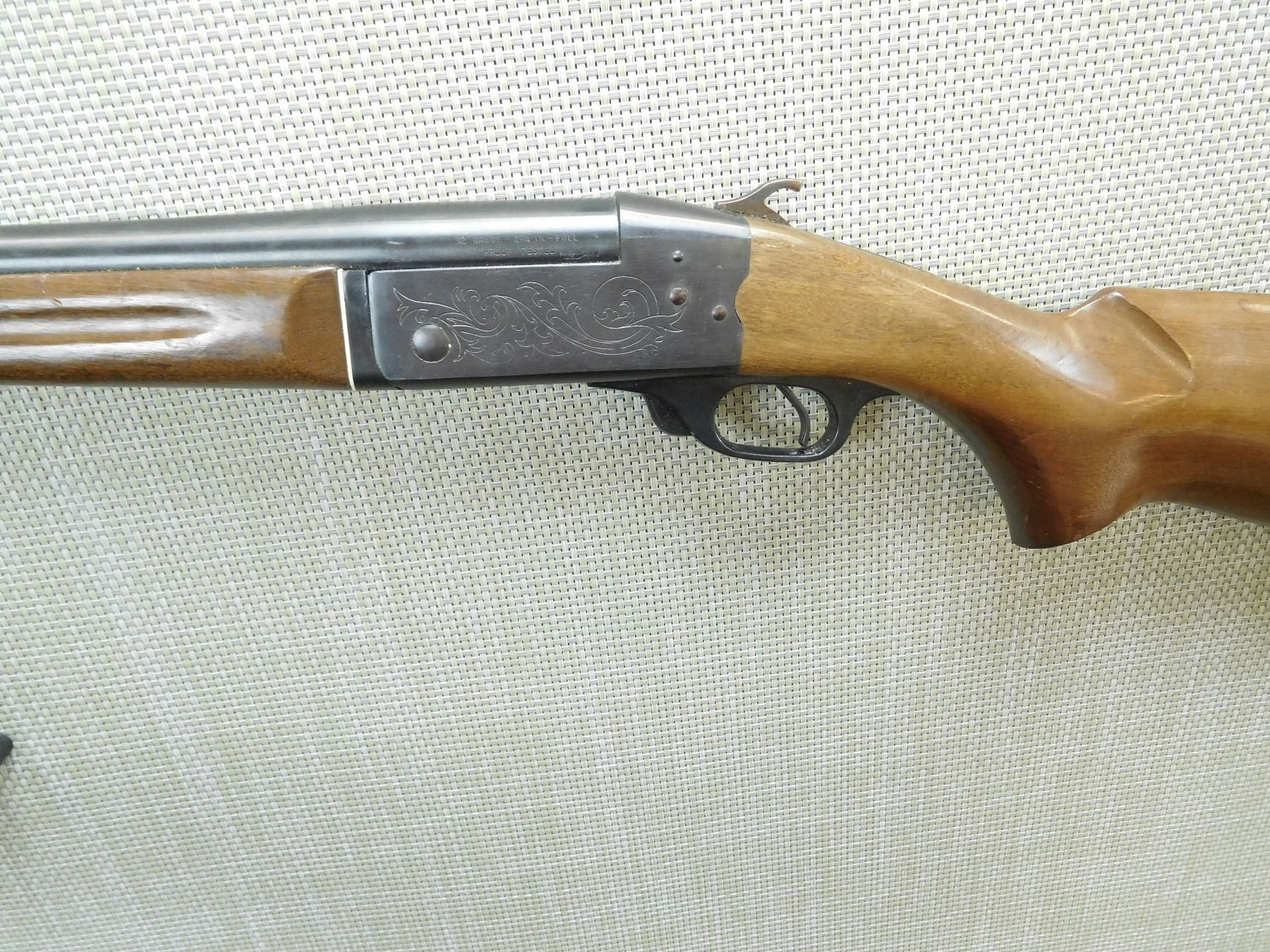 BORE IS VERY GOOD, FIXED FULL CHOKE, BEAD FRONT SIGHT, RUBBER BUTT COVER , SERIAL # 68943 , ACTION: SINGLE SHOT BREAK ACTION SHOTGUN , BARREL LENGTH: 30" , CONDITION: 7/10 , STOCK # 7800 , CLASS: CANADIAN NON RESTRICTED CLASS