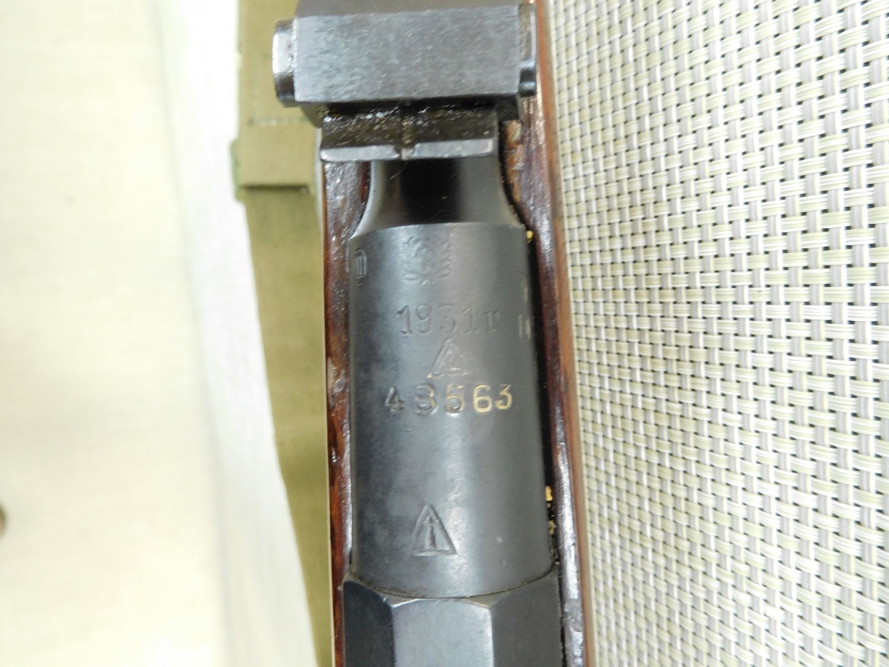 BORE IS VERY GOOD, HOODED FRONT SIGHT AND FULLY ADJUSTABLE REAR SIGHT, RETAINS FULL MILITARY CONFIGURATIONS, BOLT AND RECEIVER MATCHING, ORIGINAL CANVAS SLING ON SLING LOOPS , SERIAL # 48563 , ACTION: BOLT ACTION RIFLE , BARREL LENGTH: 30" , CONDITION: 7/10 , STOCK # 7802 , CLASS: CANADIAN NON RESTRICTED CLASS