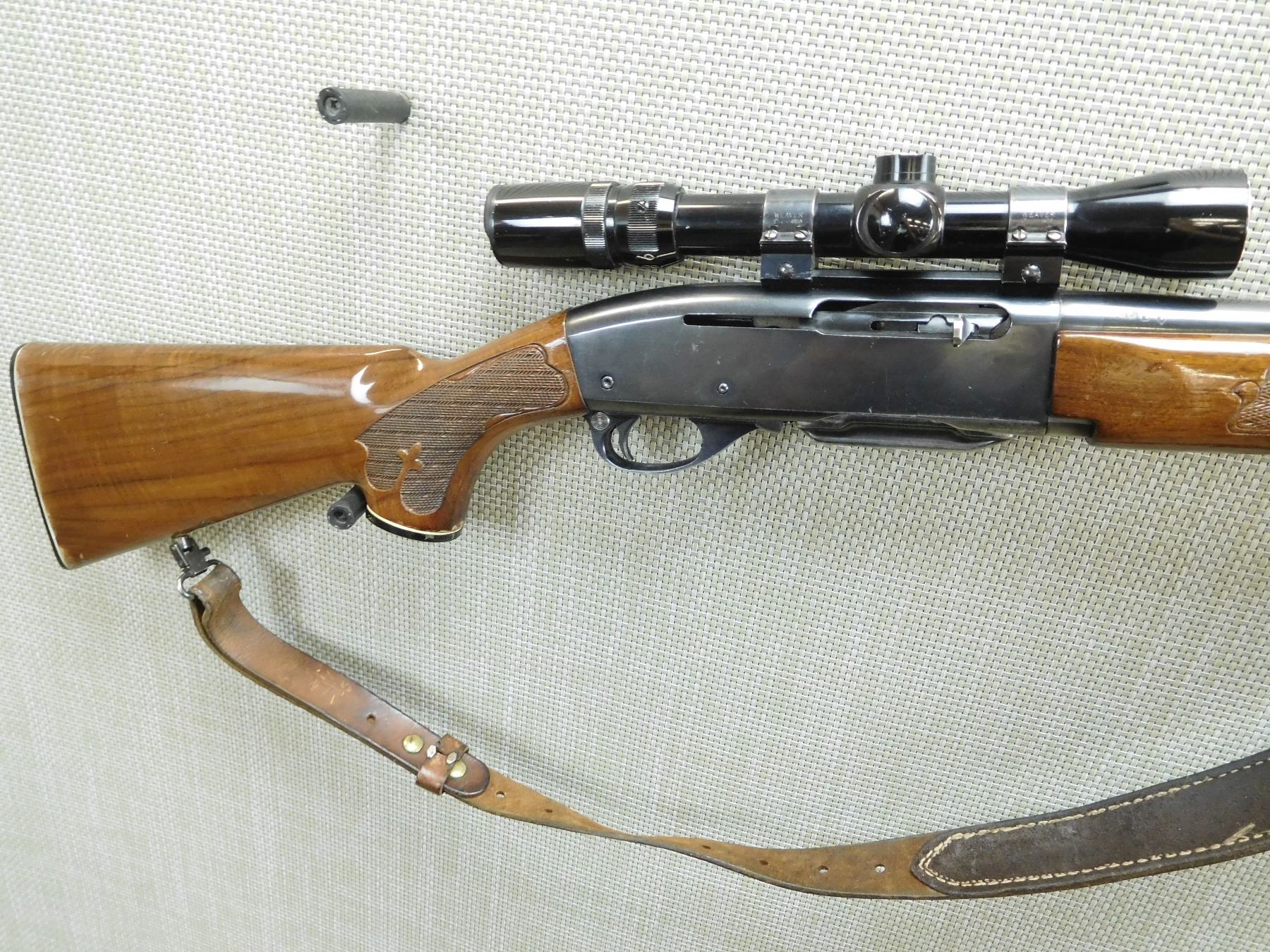 COMES WITH MAGAZINE, BORE IS DARK, RAMP FRONT AND ADJUSTABLE REAR SIGHT, HAS A 3 - 9 SCOPE, LEATHER SLING, CHECKERED FOREND AND CAPPED PISTOL GRIP BUTT STOCK, PLASTIC BUTT PLATE, SHOWS SOME HANDLING MARKS , SERIAL # B7313647 , ACTION: SEMI AUTOMATIC RIFLE , BARREL LENGTH: 22" , CONDITION: 7/10 , STOCK # 7813 , CLASS: CANADIAN NON RESTRICTED CLASS