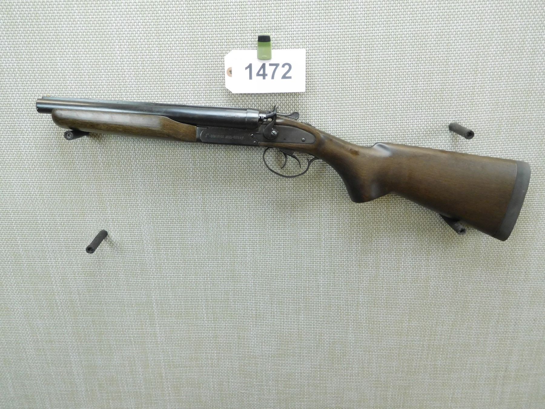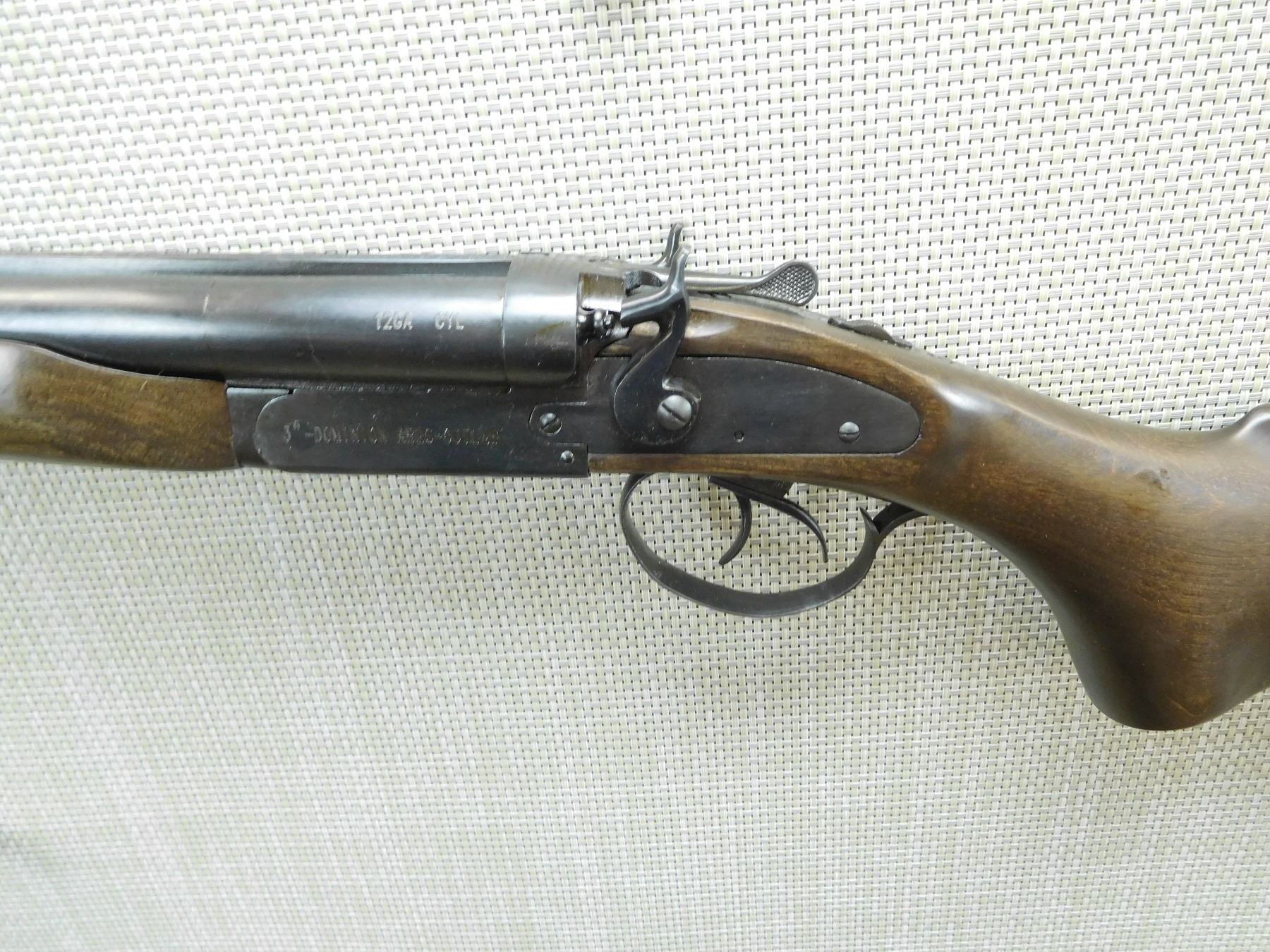 CYLINDER BORE, BEAD FRONT SIGHT WITH A SOLID RIB, BEAVER TAIL FOREND, BORE IS EXCELLENT, RUBBER BUTT PAD, EXTERNAL HAMMERS, 2 TRIGGERS, EXTRACTORS, SHOWS VERY LITTLE HANDLING MARKS , SERIAL # 1440906CA14 , ACTION: SIDE BY SIDE BREAK ACTION SHOTGUN , BARREL LENGTH: 12" , CONDITION: 8/10 , STOCK # 7828 , CLASS: CANADIAN NON RESTRICTED CLASS