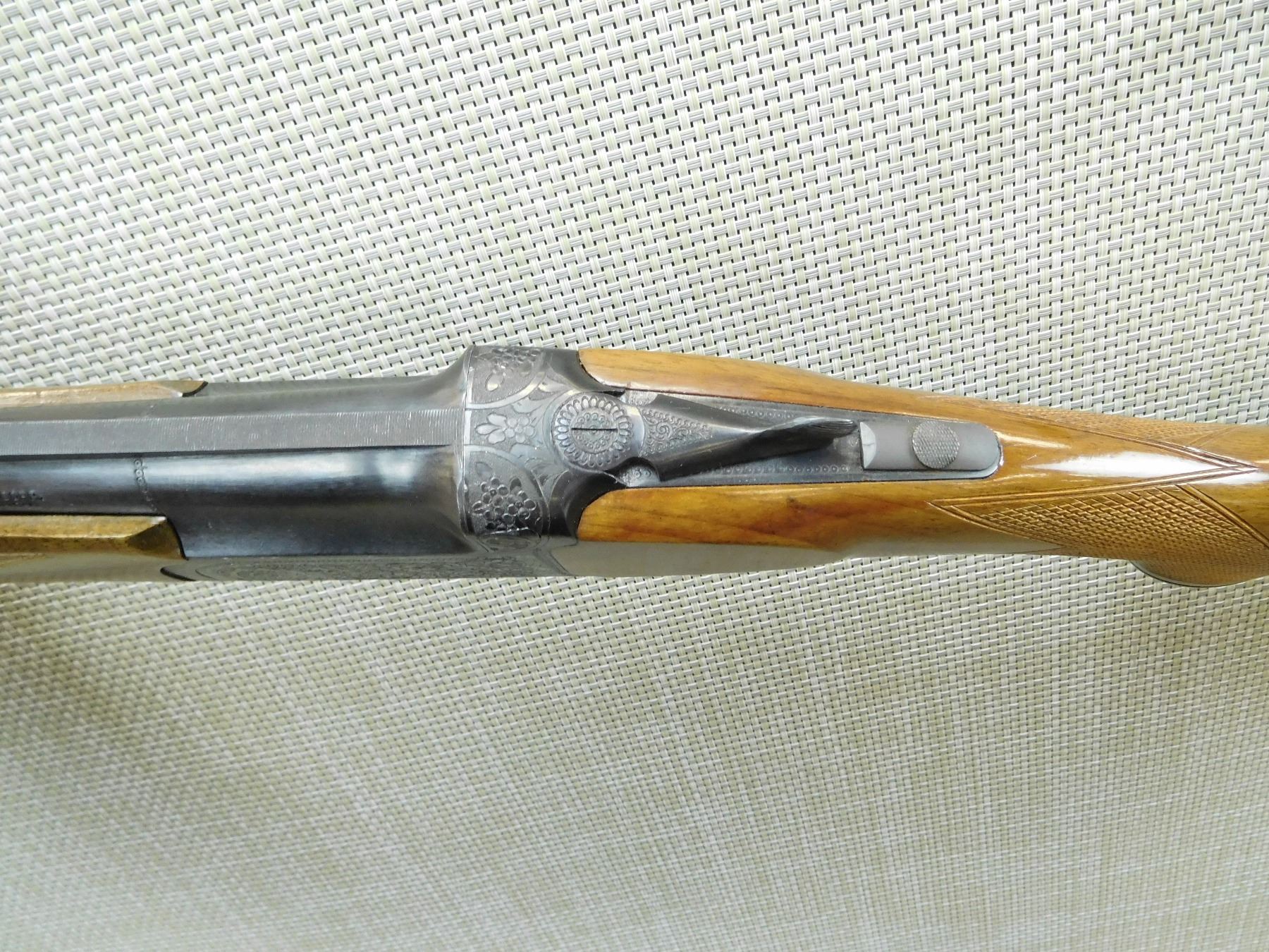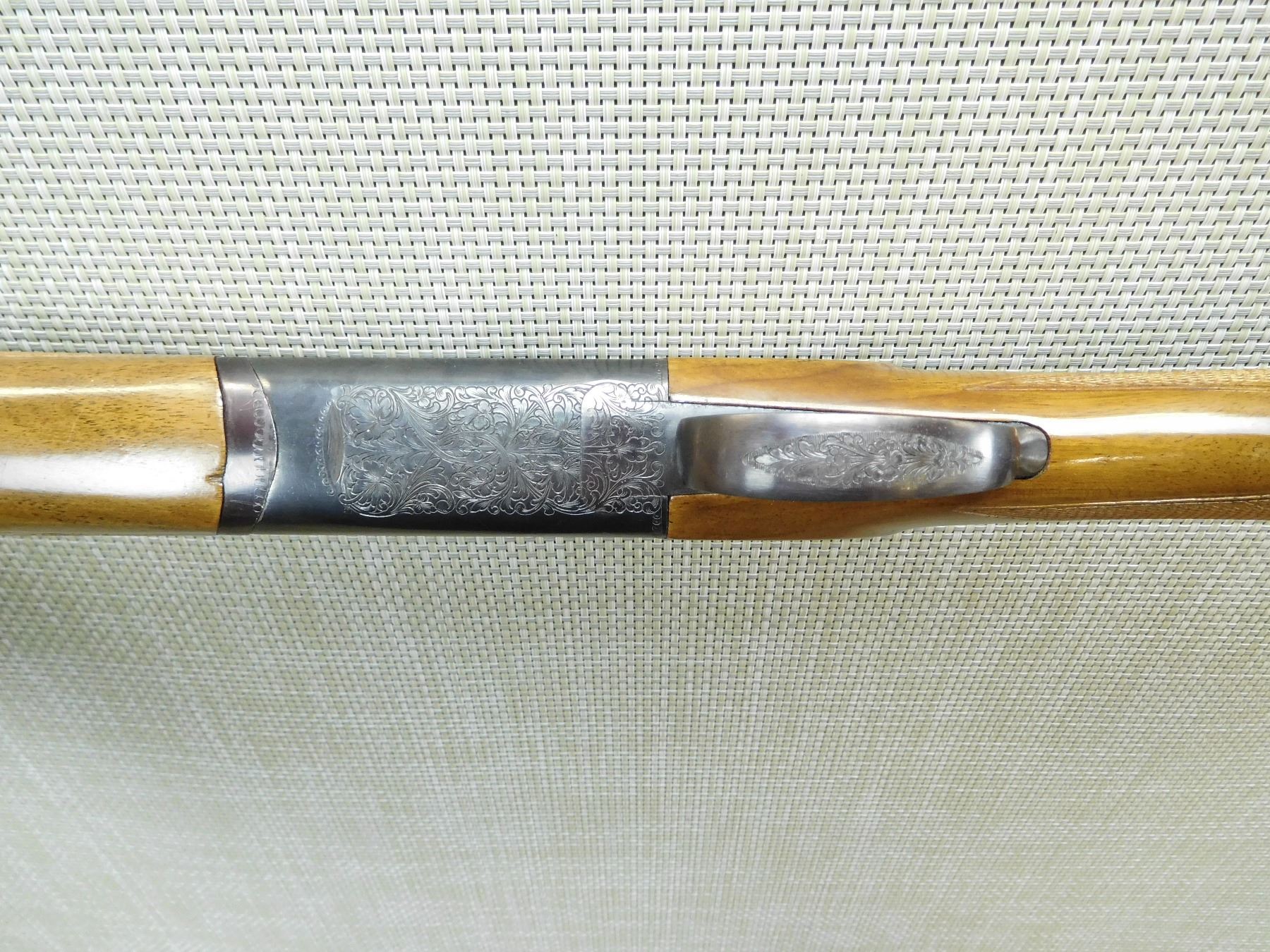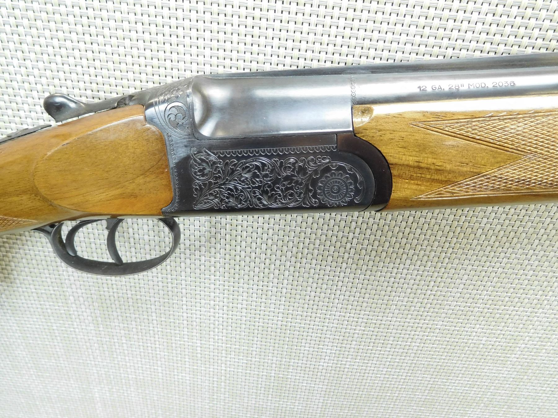 FIXED MODIFIED CHOKE, BORE IS VERY GOOD, RICHLEY ENGRAVED RECEIVER, BRASS BEAD FRONT AND MID BEAD ON A VENTED RIB BARREL, KIRSTEN LOCK UP SYSTEM, VENTED RUBBER RECOIL PAD THAT HAS PRESSED IN DENT DAMAGE, CHECKERED FOREND AND CAPPED PISTOL GRIP BUTT STOCK, SHOWS SOME MINOR HANDLING MARKS, EXTRACTORS , SERIAL # 22215 , ACTION: OVER UNDER BREAK ACTION SHOTGUN , BARREL LENGTH: 28" , CONDITION: 7/10 , STOCK # 7836 , CLASS: CANADIAN NON RESTRICTED CLASS