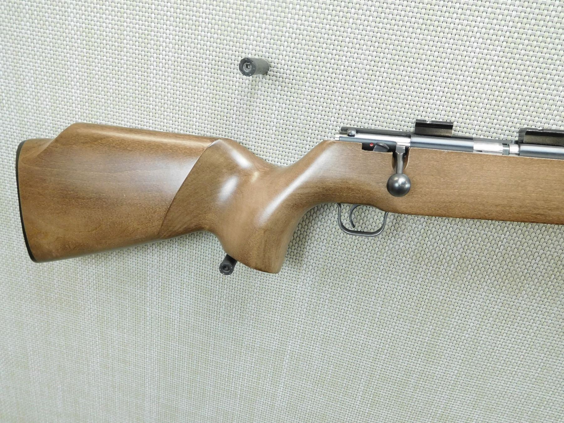 COME WITH ORIGINAL BOX AND 2 MAGAZINES, HEAVY BARREL, SCOPE MOUNTS, NO SIGHTS, SHOWS SOME HANDLING MARKS, TARGET WOOD STOCK WITH RAISED CHEEK PIECE AND RUBBER RECOIL PAD, BORE IS EXCELLENT, LIKE NEW CONDITION , SERIAL # S00377 , ACTION: BOLT ACTION RIFLE , BARREL LENGTH: 21" , CONDITION: IN BOX 9+/10 , STOCK # 7837 , CLASS: CANADIAN NON RESTRICTED CLASS