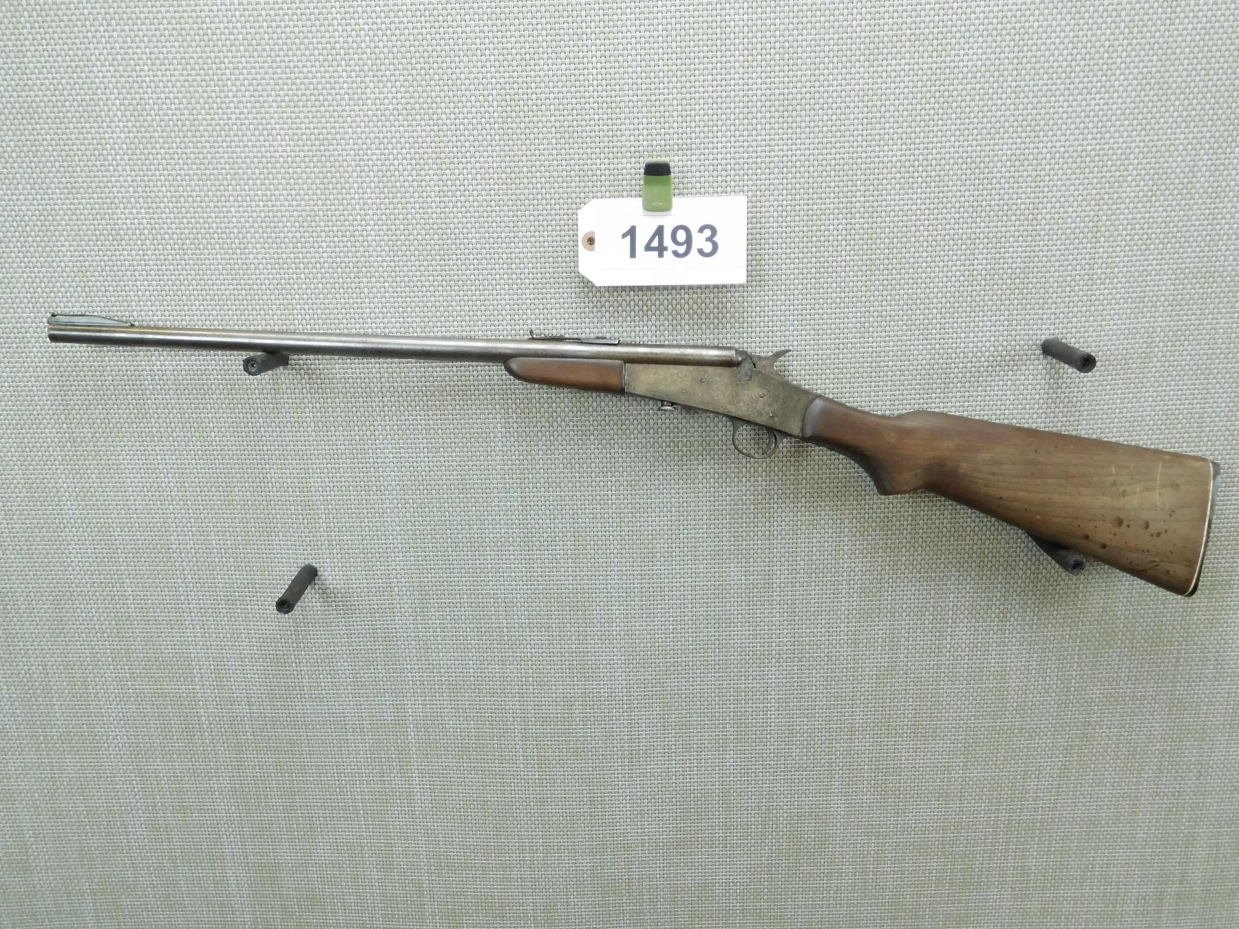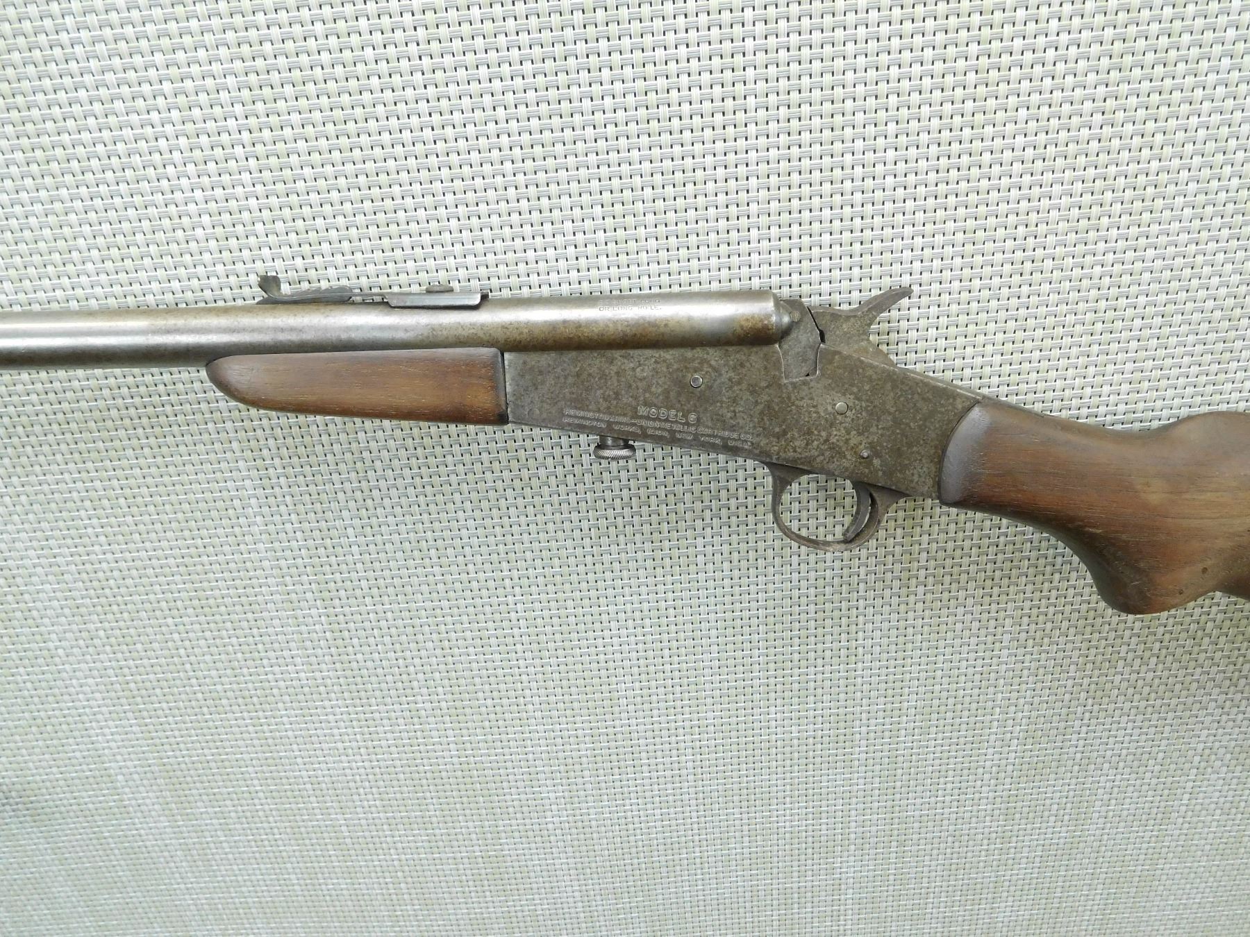 FLIP ADJUSTABLE FRONT SIGHT AND ADJUSTABLE REAR NON ORIGINAL SIGHT, MISSING THE REAR PEEP SIGHT, BUTT STOCK IS CRACKED AND APPEARS TO BE A REPLACEMENT, REPLACED PLASTIC BUTT PLATE, SHOWS EXTENSIVE HANDLING MARKS , SERIAL # N/A , ACTION: SINGLE SHOT FALLING BLOCK RIFLE , BARREL LENGTH: 20" , CONDITION: 3/10 , STOCK # 7849 , CLASS: CANADIAN NON RESTRICTED CLASS