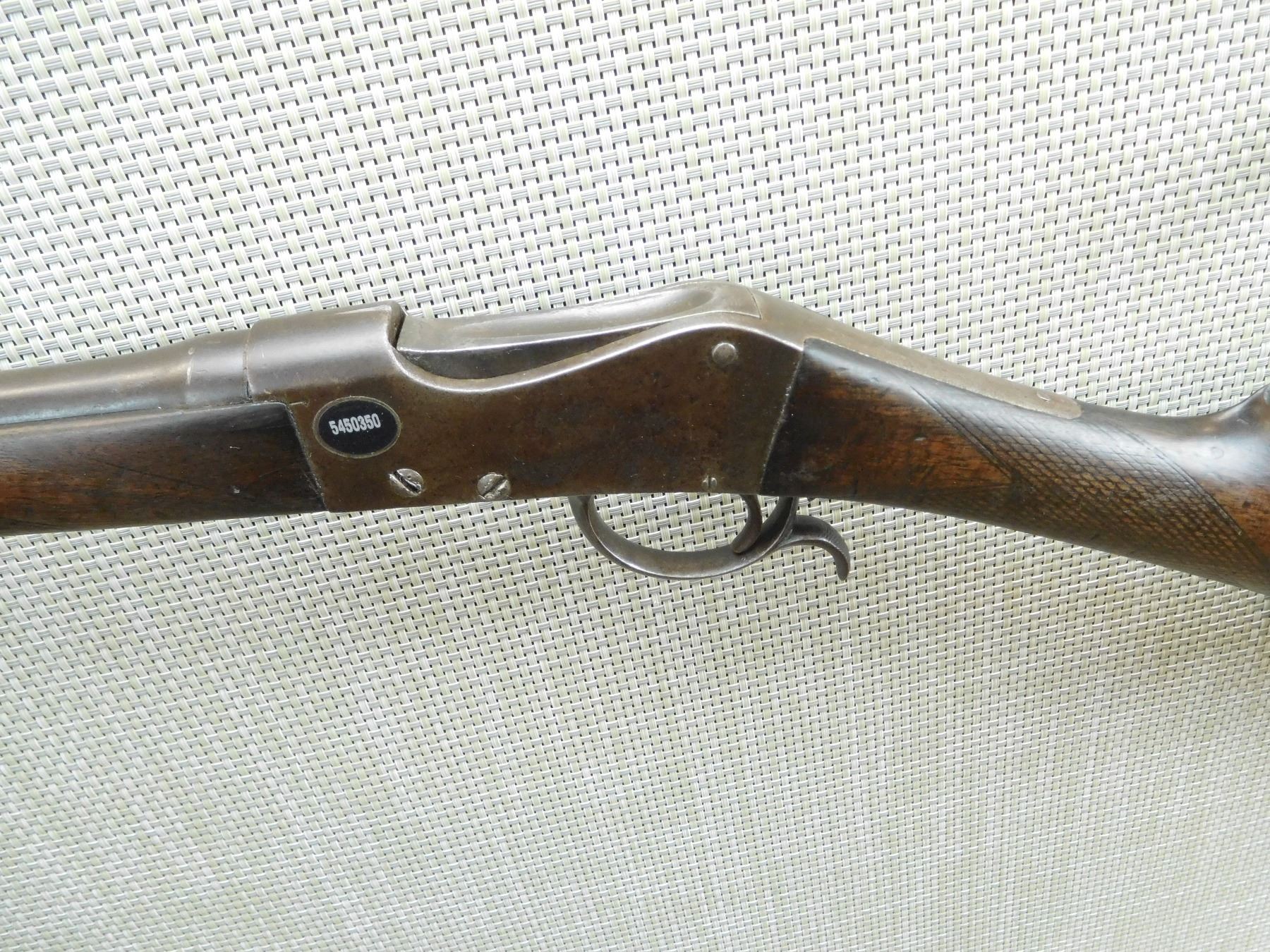 FIXED FULL CHOKE, BELGIAN PROOF MARKS, DARK BORE, REPLACED BEAD FRONT SIGHT, CHECKERED STRAIGHT GRIP STOCK WITH STEEL BUTT PLATE, SHOWS SOME HANDLING MARKS , SERIAL # N/A , ACTION: MARTINI ACTION , BARREL LENGTH: 26" , CONDITION: 4/10 , STOCK # 7871 , CLASS: CANADIAN NON RESTRICTED CLASS