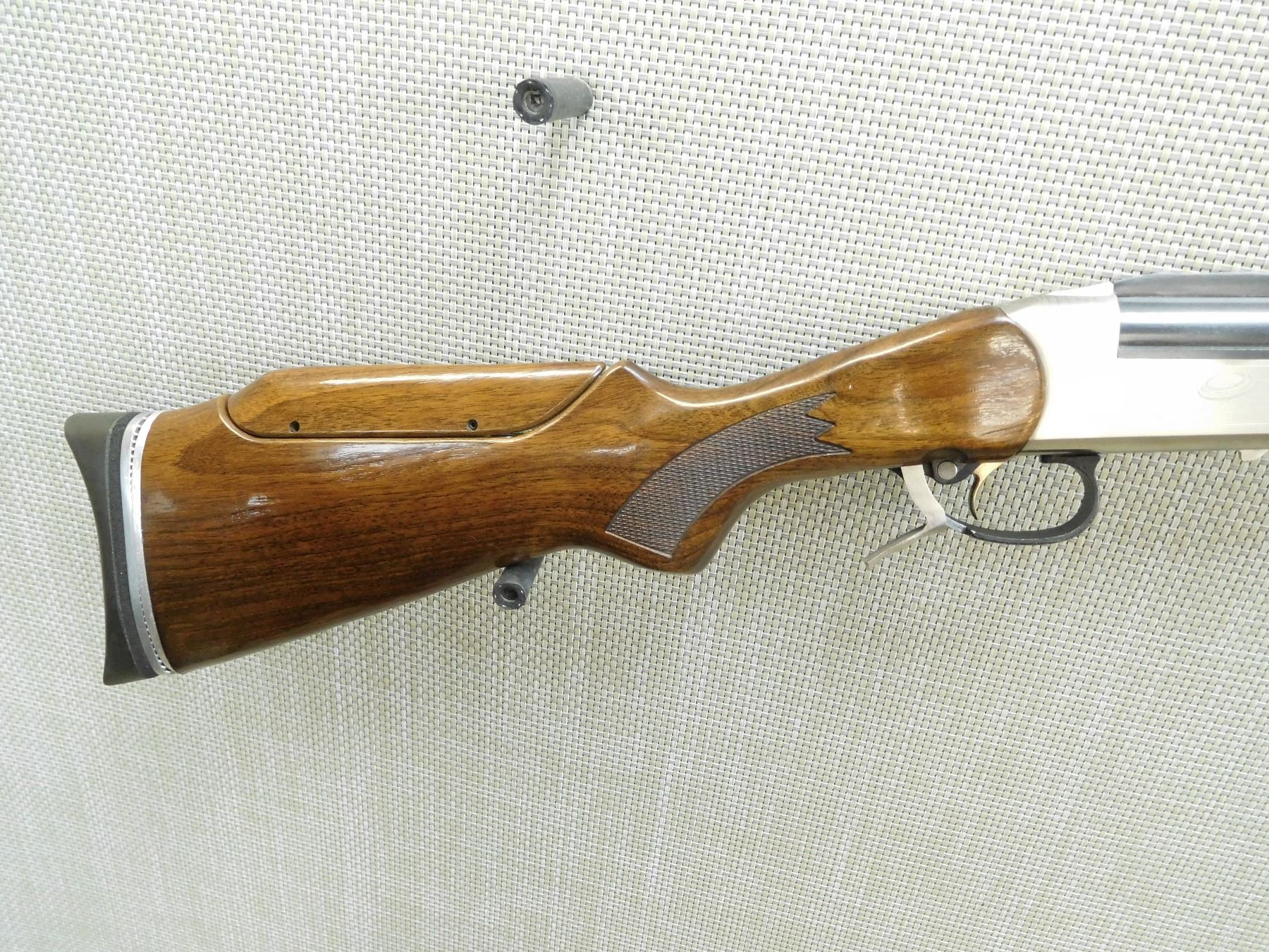 COMES WITH 2 CHOKES, FIBEROPTIC FRONT AND BRASS MID BEAD SIGHT ON A RAISED VENTED RIB BARREL THAT IS PORTED AT THE MUZZLE, CHECKERED FOREND AND PISTOL GRIP BUTT STOCK, FULLY ADJUSTABLE BUTT STOCK FOR LENGTH AND HEIGHT WITH SPACER AND TOOLS, GOLD TRIGGER, EXCELLENT BORE, SHOWS VERY LITTLE HANDLING MARKS , SERIAL # 11049217 , ACTION: SINGLE SHOT BREAK ACTION SHOTGUN , BARREL LENGTH: 30" , CONDITION: 9/10 , STOCK # 7881 , CLASS: CANADIAN NON RESTRICTED CLASS