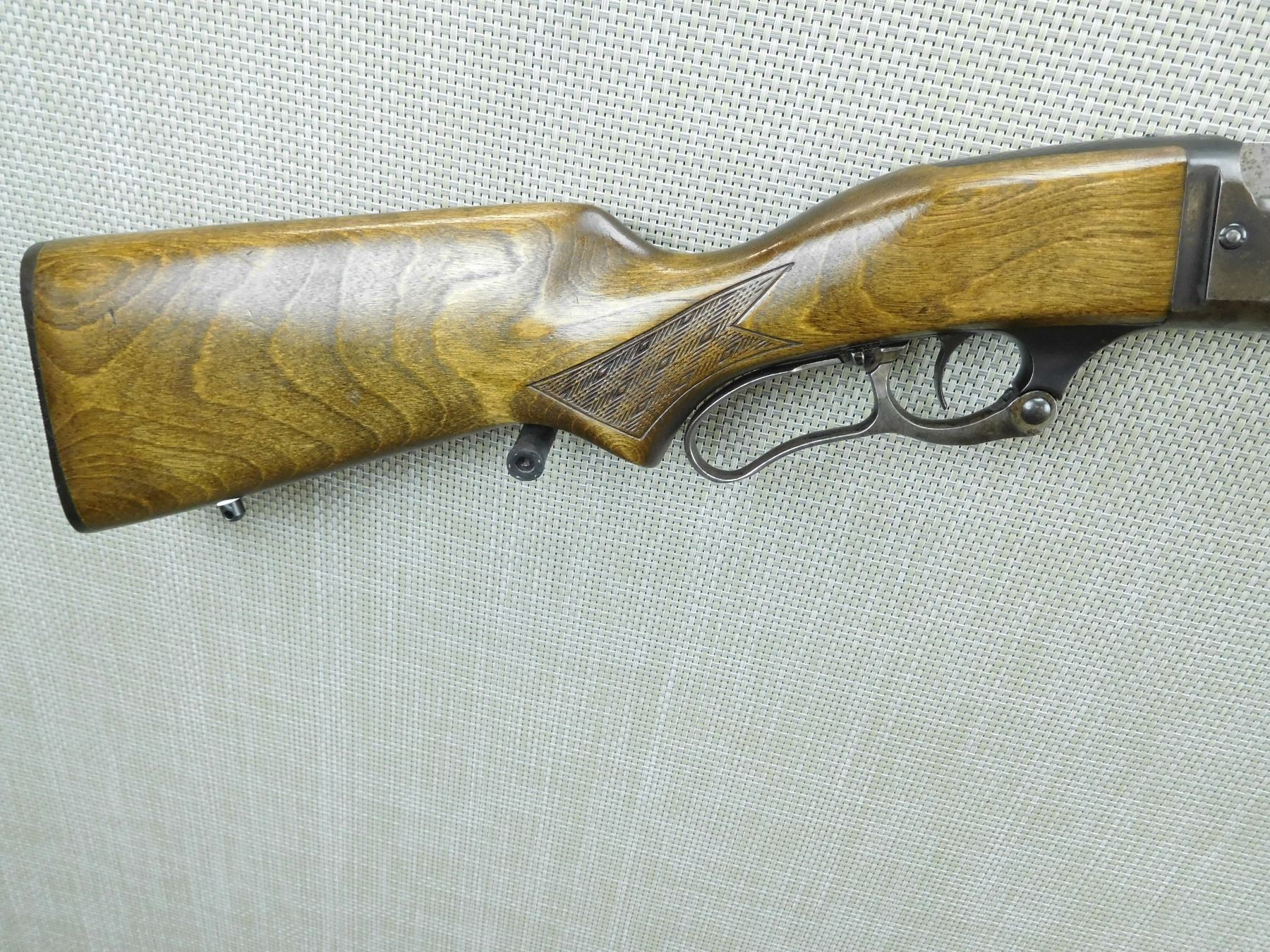 INTERNAL ROTARY MAGAZINE, CHECKERED FOREND AND SEMI PISTOL GRIP BUTT STOCK, SLING SWIVEL LOOPS, PLASTIC BUTT PAD,IRON RAMP FRONT AND FLIP ADJUSTABLE REAR SIGHT, GOOD BORE, SHOW SOME HANDLING MARKS , SERIAL # C141289 , ACTION: LEVER ACTION RIFLE , BARREL LENGTH: 22" , CONDITION: 7/10 , STOCK # 7885 , CLASS: CANADIAN NON RESTRICTED CLASS