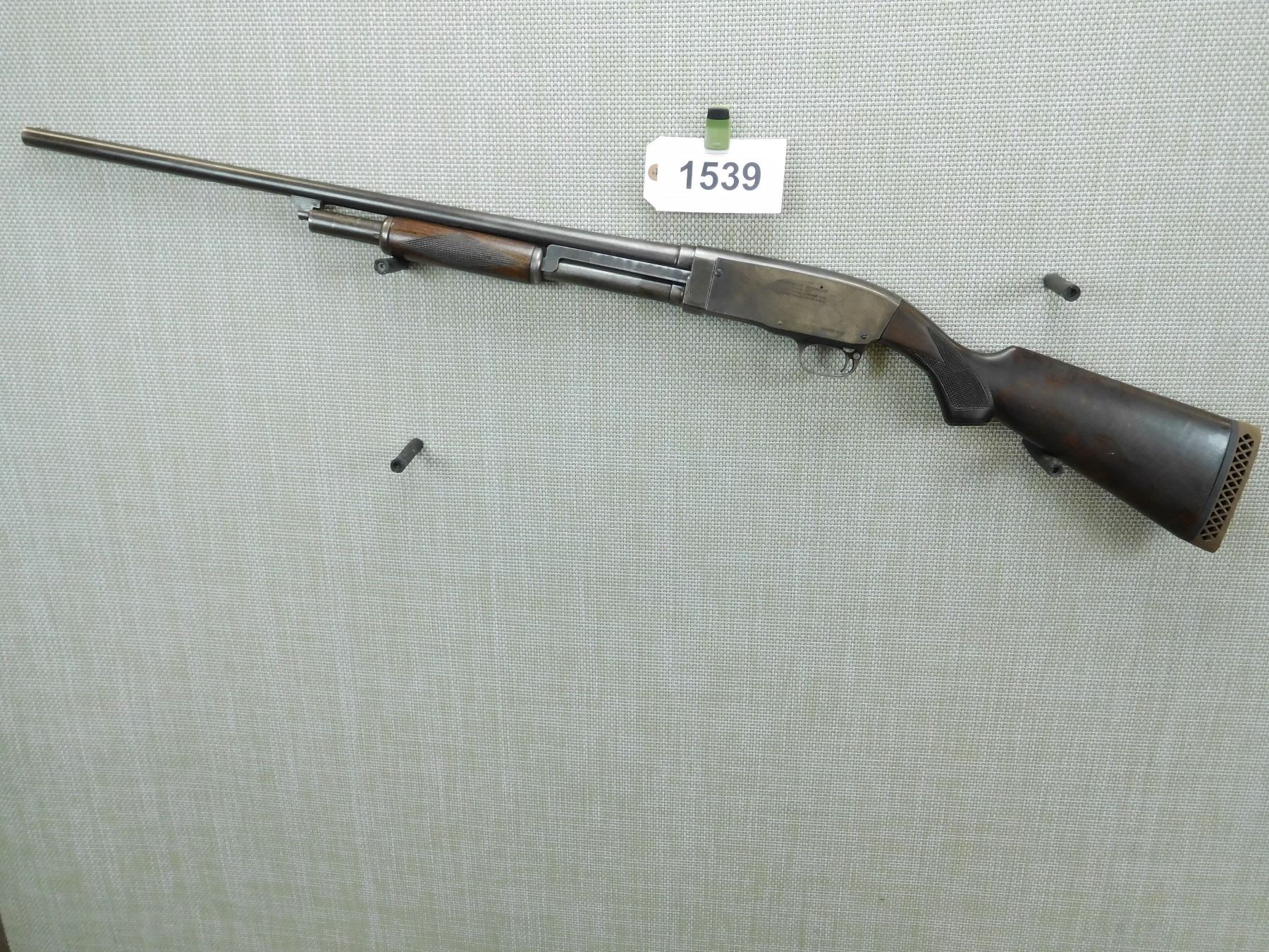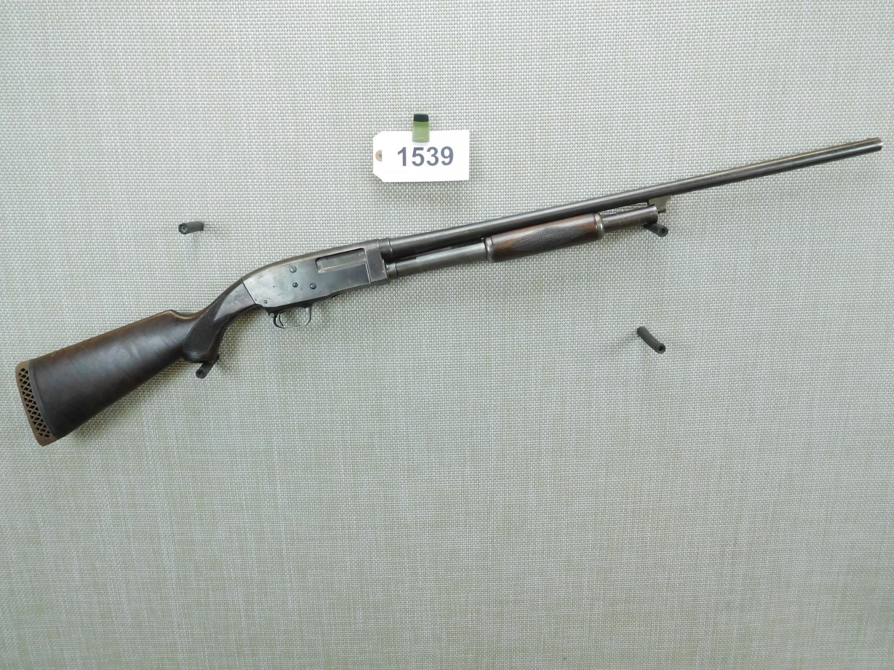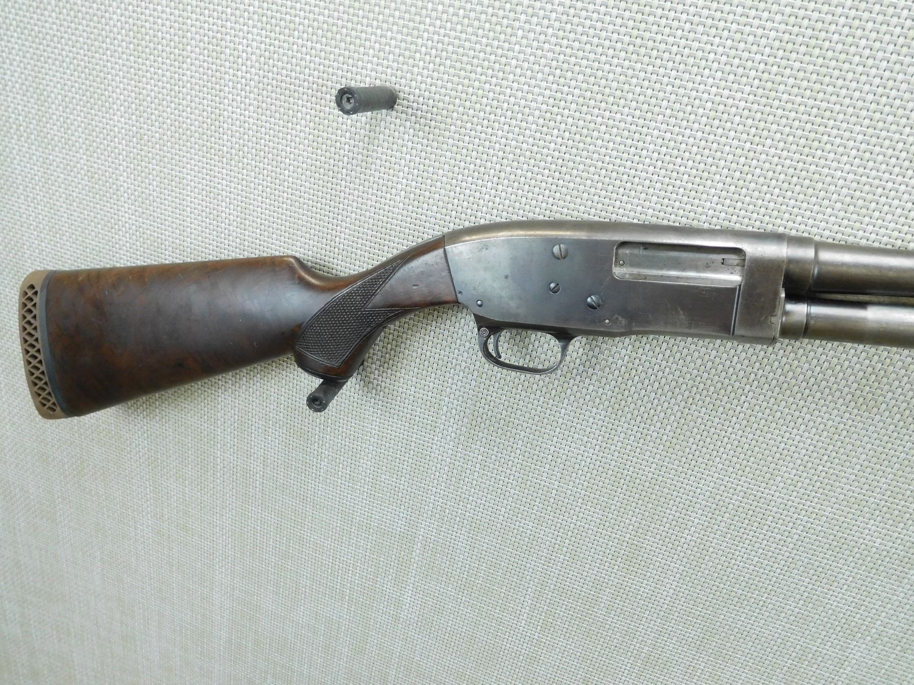 BORE IS GOOD, CYLINDER BORE, BEAD FRONT SIGHT, CHECKERED FOREND AND CAPPED PISTOL GRIP BUTT STOCK WITH VENTED RUBBER RECOIL PAD, SHOWS SOME HANDLING MARKS , SERIAL # U68021 , ACTION: PUMP ACTION SHOTGUN , BARREL LENGTH: 26" , CONDITION: 6/10 , STOCK # 7895 , CLASS: CANADIAN NON RESTRICTED CLASS