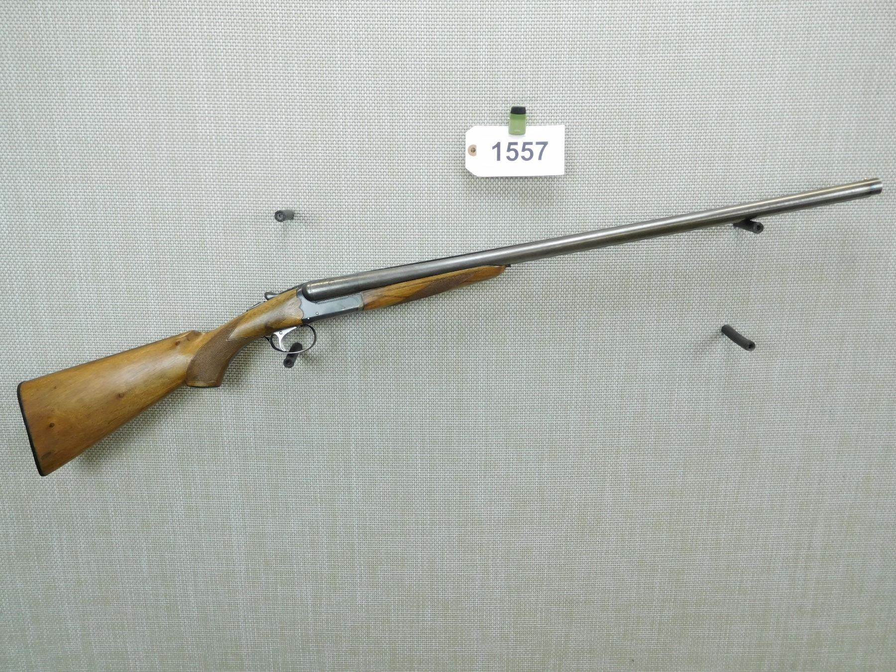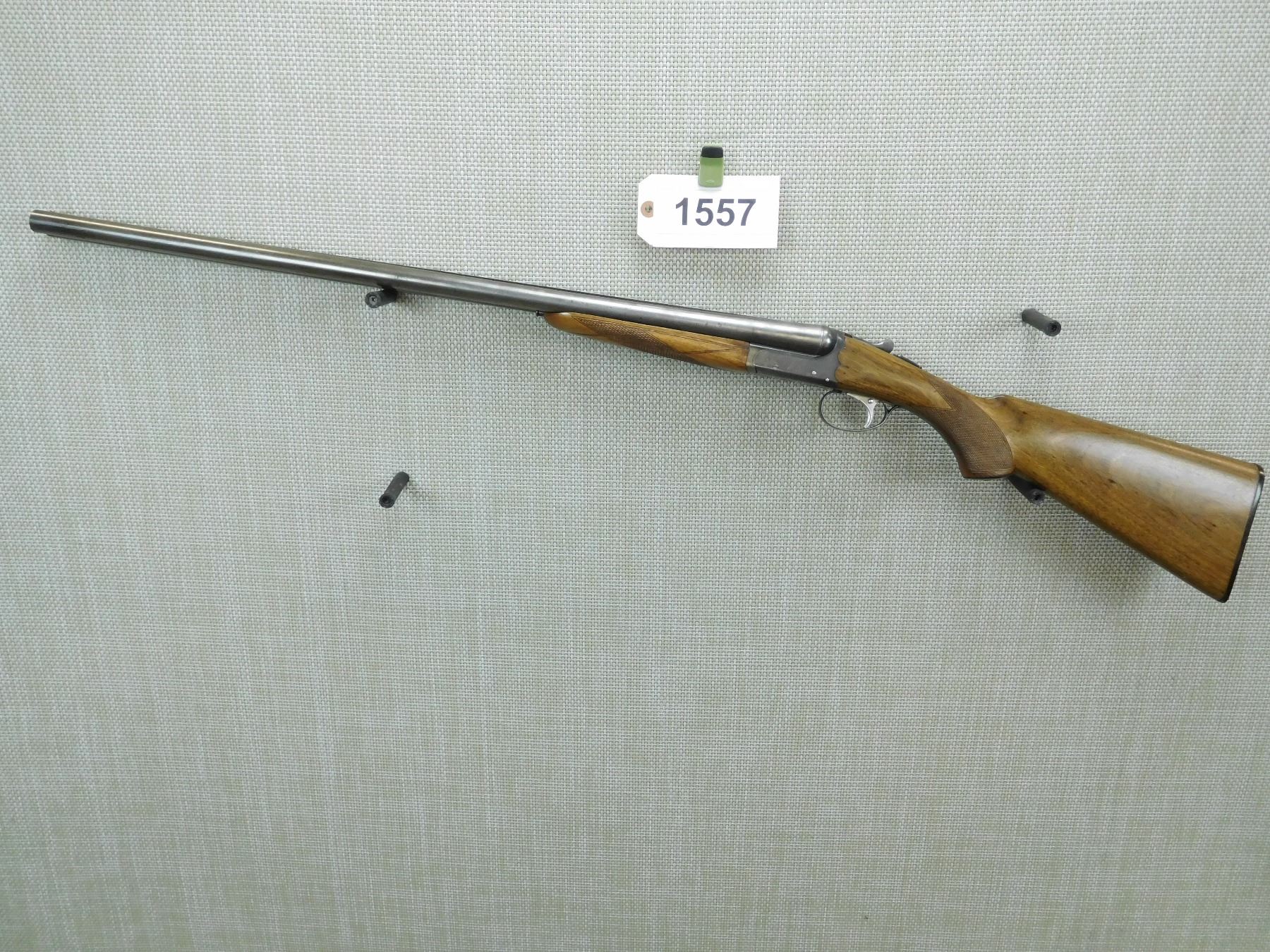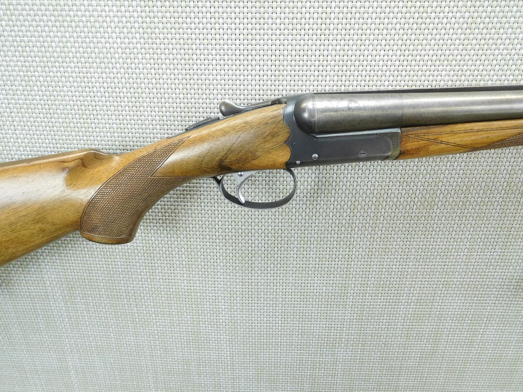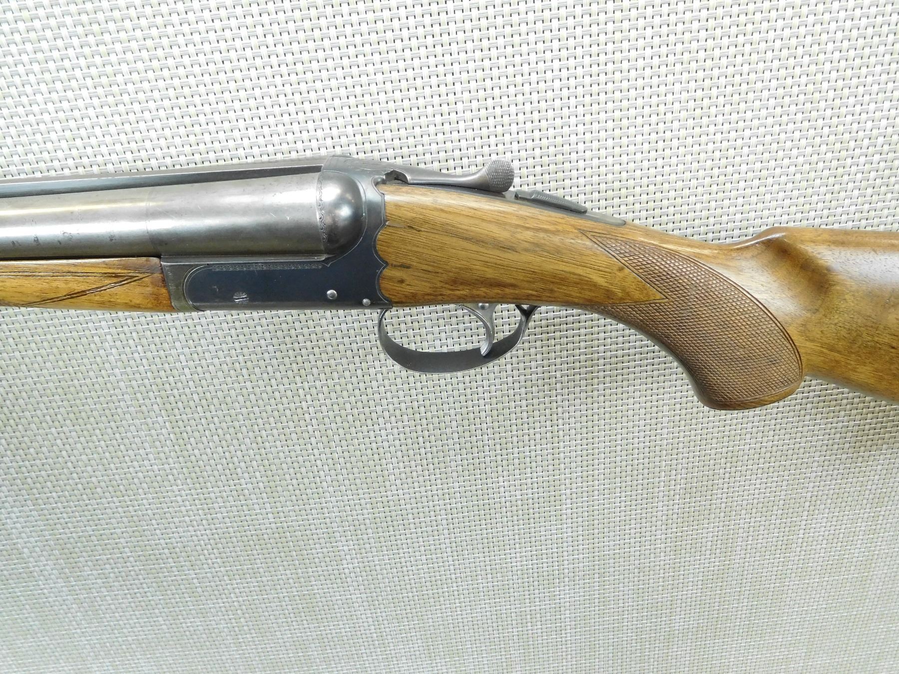 FIXED FULL CHOKES, BORE IS VERY GOOD, SHOWS SOME HANDLING MARKS, CHECKERED FOREND AND CAPPED PISTOL GRIP BUTT STOCK WITH PLASTIC BUTT PLATE, SINGLE TRIGGER, BRASS FRONT AND MID BEAD SIGHTS , SERIAL # 166821 , ACTION: SIDE BY SIDE BREAK ACTION SHOTGUN , BARREL LENGTH: 28" , CONDITION: 7/10 , STOCK # 7913 , CLASS: CANADIAN NON RESTRICTED CLASS