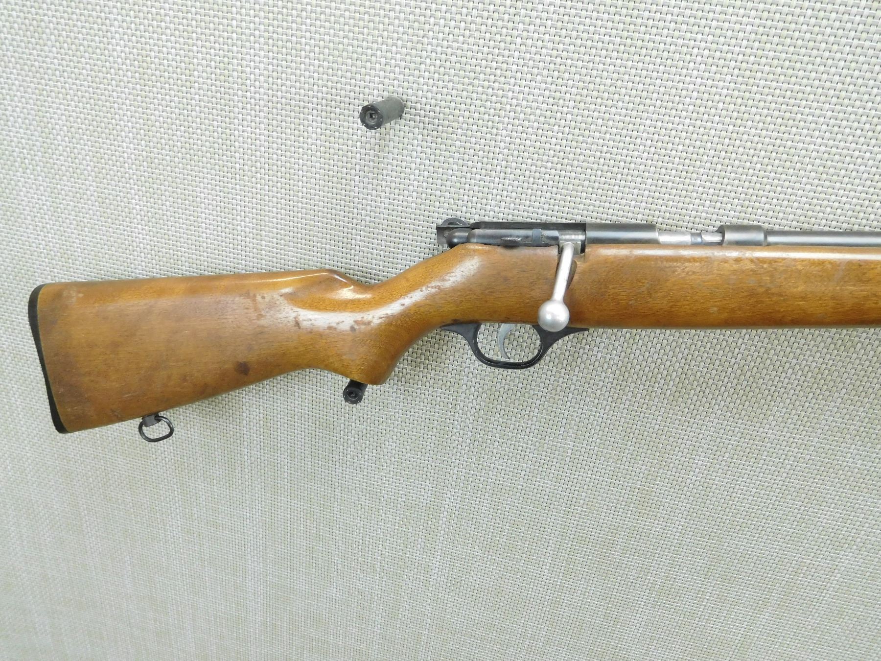 TUBULAR MAGAZINE, MISSING THE REAR APERTURE SIGHT, BORE IS EXCELLENT, SLING SWIVELS, PLASTIC BUTT PLATE, MINOR CHIP OUT OF TOE, SIDE SAFETY , SERIAL # N/A , ACTION: BOLT ACTION REPEATER RIFLE , BARREL LENGTH: 24" , CONDITION: 6/10 , STOCK # 7925 , CLASS: CANADIAN NON RESTRICTED CLASS