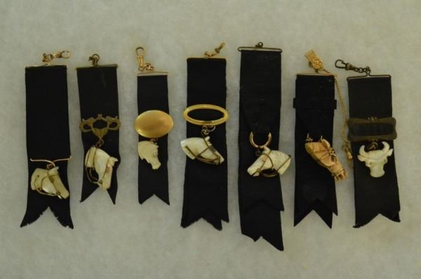 Lot 215 Collection of 7 Antique Mother of Pearl Watch Fobs