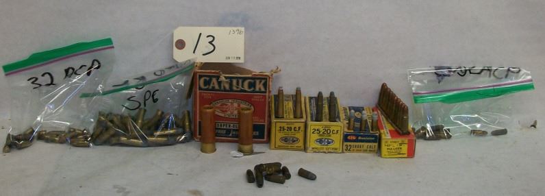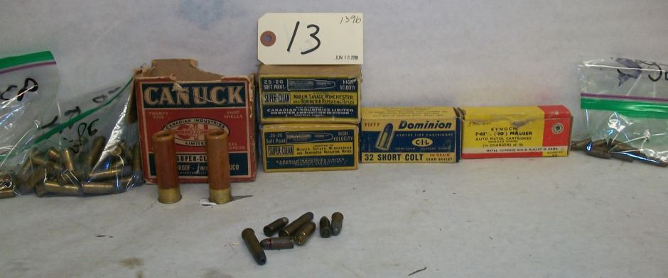 56 RNDS 25-20, 25 RNDS 32 SHORT COLT, 20 RNDS .30 MAUSER WITH TWO STRIPPER CLIPS, 12 RNDS 25 ACP, 18 RNDS 32 ACP, 40 RNDS 38 S & W SPECIAL, 22 RNDS 16 GA, 7 RNDS MISC