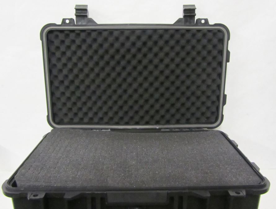 POWER FIST 22" IMPACT RESISTANT PORTABLE TOOL BOX WITH FOAM LINERS AND SUITCASE WHEELS AS WELL AS EXTENDABLE HANDLE