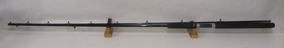 SHIMANO TRITON DOWN RIGGER ROD, 9 FEET LONG, 8-17LB, ACTION MEDIUM. HAS MIDLAND INDUSTRIES STORAGE TUBE.