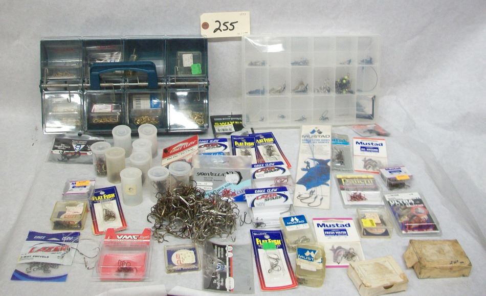 VERY LARGE ASSORTMENT OF TOP NAME BRAND HOOKS AND SWIVELS. GAMAKATSU, EAGLE CLAW, MUSTAD, DAIICHI AND MANY OTHERS. THIS LOT HAS 1000'S OF VARIOUS SIZES AND CONFIGURATIONS OF BOTH STEELHEAD, BAIT AND TREBLE HOOKS. TOO MANY TO LIST.