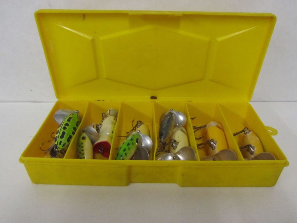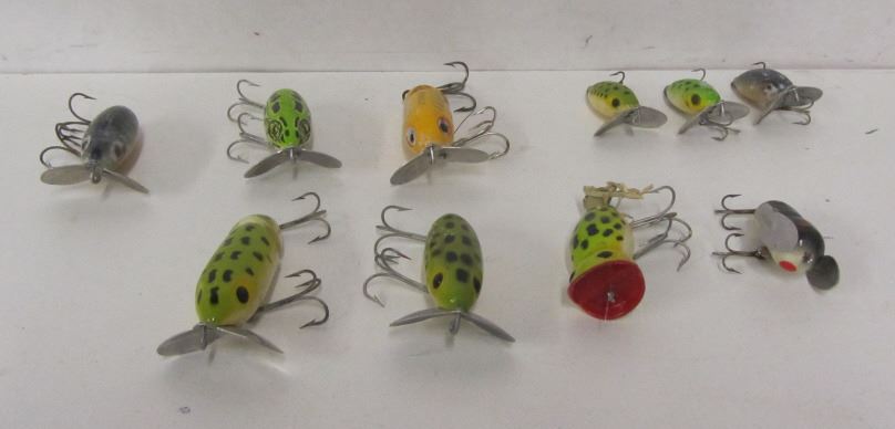 ARBOGAST SURFACE LURES, ONE HEDDON CRAZY CRAWLER, ONE HULA POPPER.