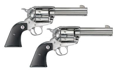 Ruger, Vaquero SASS, Single-Action Revolver, 357 Mag, 4.6" Barrel, High-Gloss Stainless Finish, Black Checkered, 6Rd, Fixed Sights