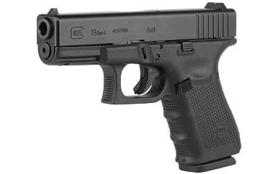 Glock, 19 Gen 4, Safe Action, Compact Pistol, 9MM, 4.01" Barrel, Polymer Frame, Matte Finish, Fixed Sights, 15Rd, 3 Magazines, Glock OEM Rail