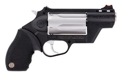 Taurus, Judge, Public Defender, Small Frame, 410 Gauge/45LC, 2" Barrel, 2.5" Chamber, Polymer Frame, Stainless Finish, Rubber Grips, Fixed Sight, 5Rd