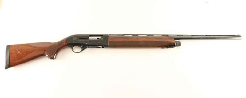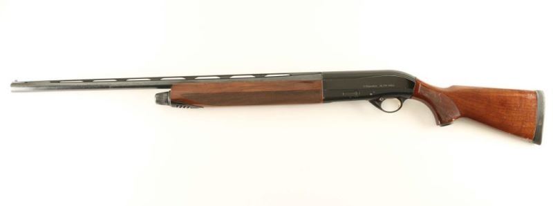 'Sporting' Italian made gas operated semi-automatic shotgun chambered for 2 3/4" & 3" 12 gauge shells, manufactured circa 1999. Features a blued 28" barrel with wide ventilation rib & removable cylinder choke, 1/2 length tube magazine, sheared-off front sight, smooth gold trigger, push button safety, serrated charging handle, bolt hold open lever, black finished alloy receiver, checkered walnut forend with glossy finish and pistol grip shoulder stock with metal grip cap, Decelerator recoil pad, and 13" LOP. Shotgun exhibits approximately 85% of it's original finish showing scratches on the barrel and edge wear & scattered losses on the receiver. Action is smooth, bore is excellent & shows a small ding in the right side of the barrel towards the muzzle and the wood stocks are good+ with some blemishes. Condition is NRA Good. ***Modern Firearm***
