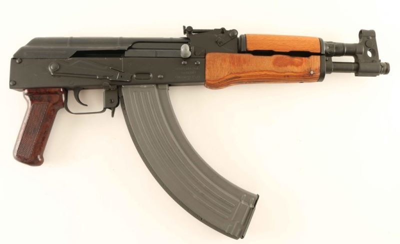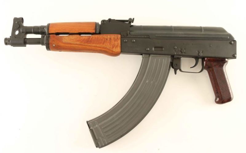 Romania made AK platform semi-automatic pistol chambered in 7.62x39mm. Imported by C.A.I. of Georgia, V.T. with import marks on the right side of the receiver. Features a matte black finish, 11.5" threaded barrel with a tack welded thread protector, shrouded adjustable post front sight, tangent rear sight graduated to 1,000 meters, smooth trigger, manual safety, stamped steel receiver, 40 round steel magazine, smooth wood handguard, laminated wood forend and checkered brown composite pistol grip. Includes a US brand padded soft case with the factory manual and two spare 30 round steel magazines. Pistol exhibits approximately 98% of it's original finish showing few losses and some bright scuffs. Action is smooth, bore is pristine and the stocks are fine. Condition is NRA Excellent. ***Modern Firearm***