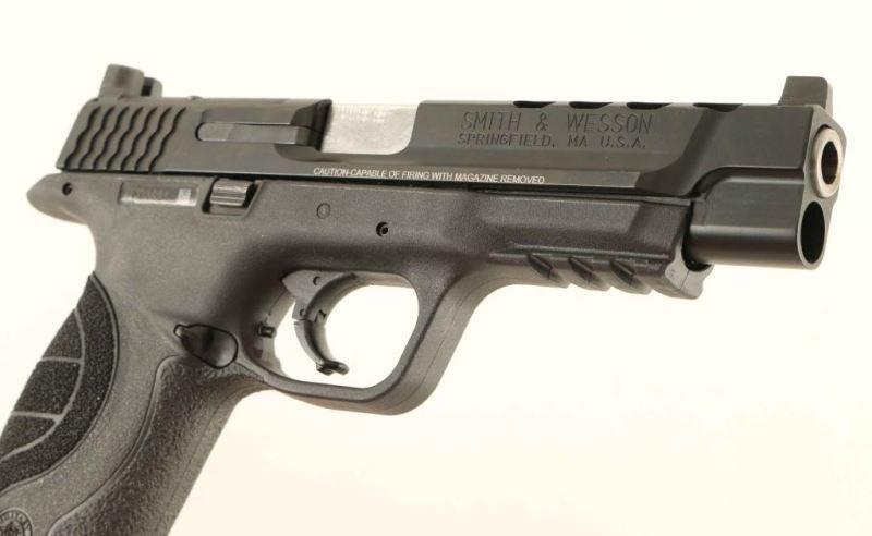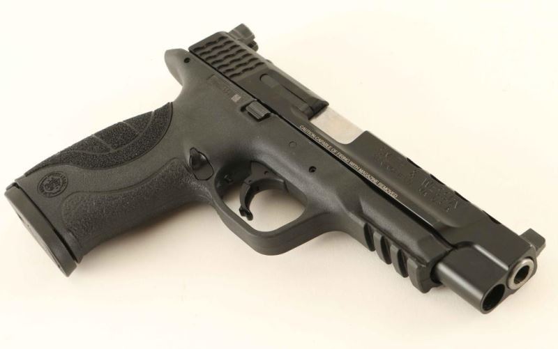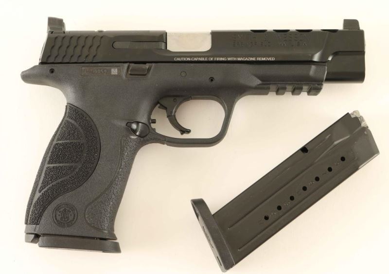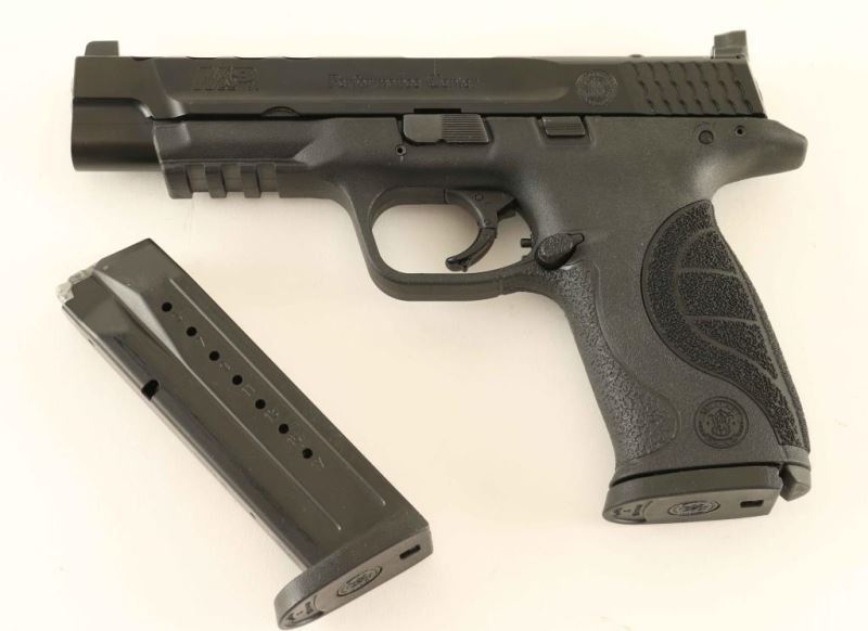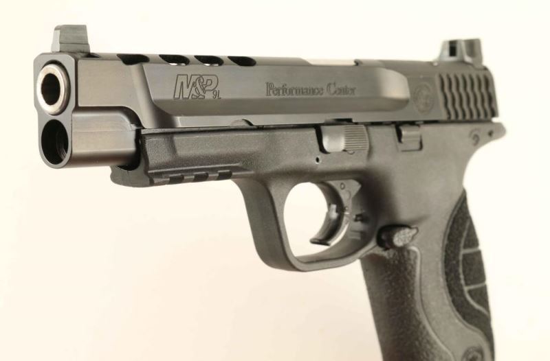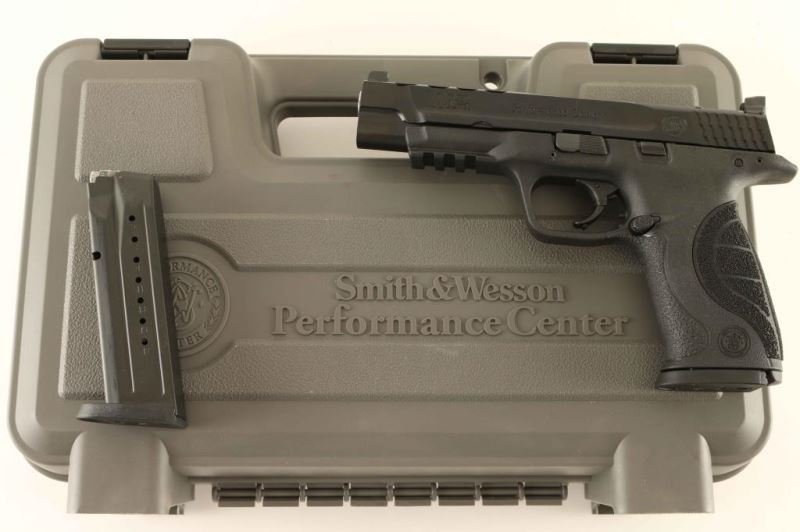 'Performance Center, Competition Optics Ready Equipment' Striker fired semi-automatic competition pistol chambered in 9x19mm, manufactured circa 2015. Features a black Armornite finished stainless steel slide with ports & provisions for a mounting a mini-reflex sight, steel guide rod, ported 5" stainless steel barrel, tall three-dot steel sights, safety trigger with overtravel stop, ambidextrous slide stop, push button magazine release, factory 17 round magazine, and black Zytel polymer frame with integral accessory rail & aggressively textured interchangeable palm swell. Includes the original factory hard case with documents, lock, spend case, optics mounting hardware, two additional palm swell inserts and a spare magazine. Pistol exhibits approximately 99% of it's original finish showing little to no finish loss and some light slide wear on the barrel. Action is very smooth, the bore is excellent and the polymer frame is fine. Condition is NRA Excellent in box. ***Modern Firearm***