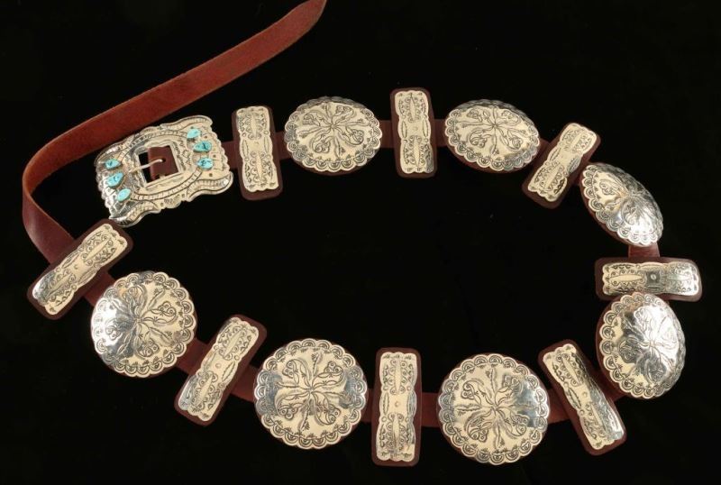 Lot 29 Navajo Turquoise & Silver Concho Belt